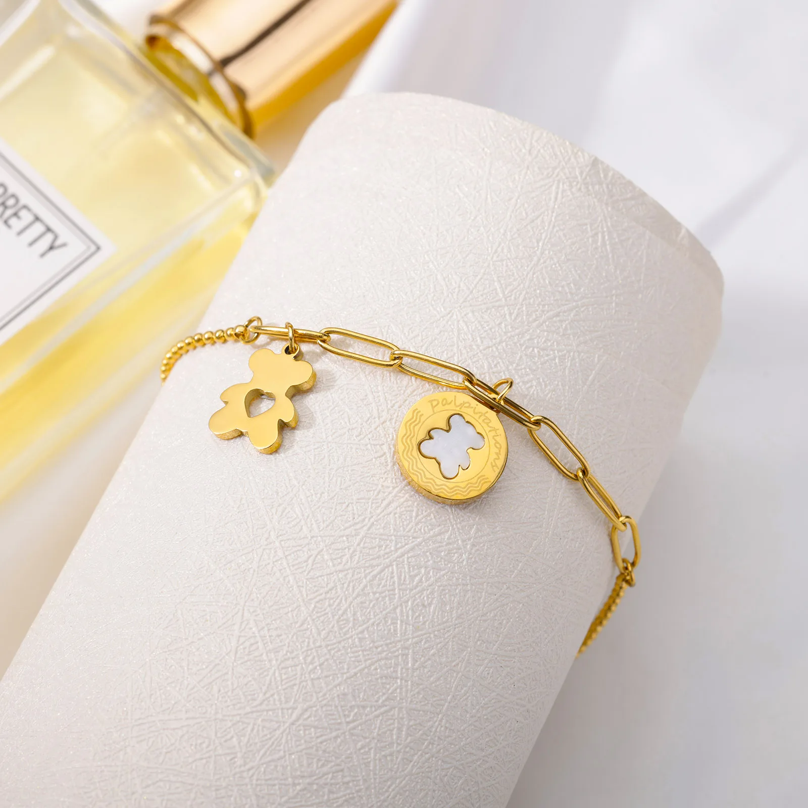 Urso de pelúcia pulseira para mulheres aço inoxidável italiano charme pulseira femme moda boho verão jóias presente pulseras mujer