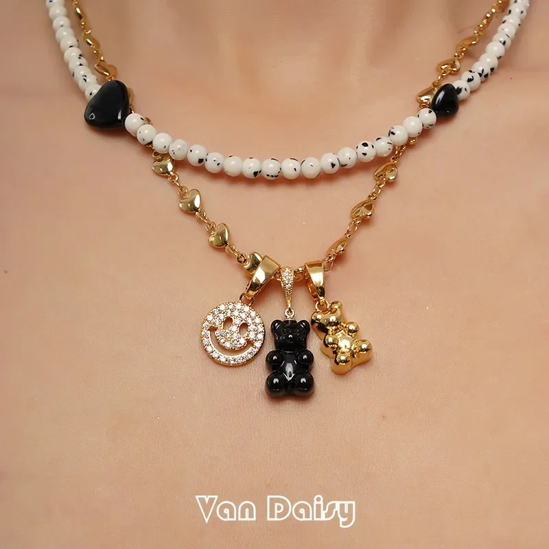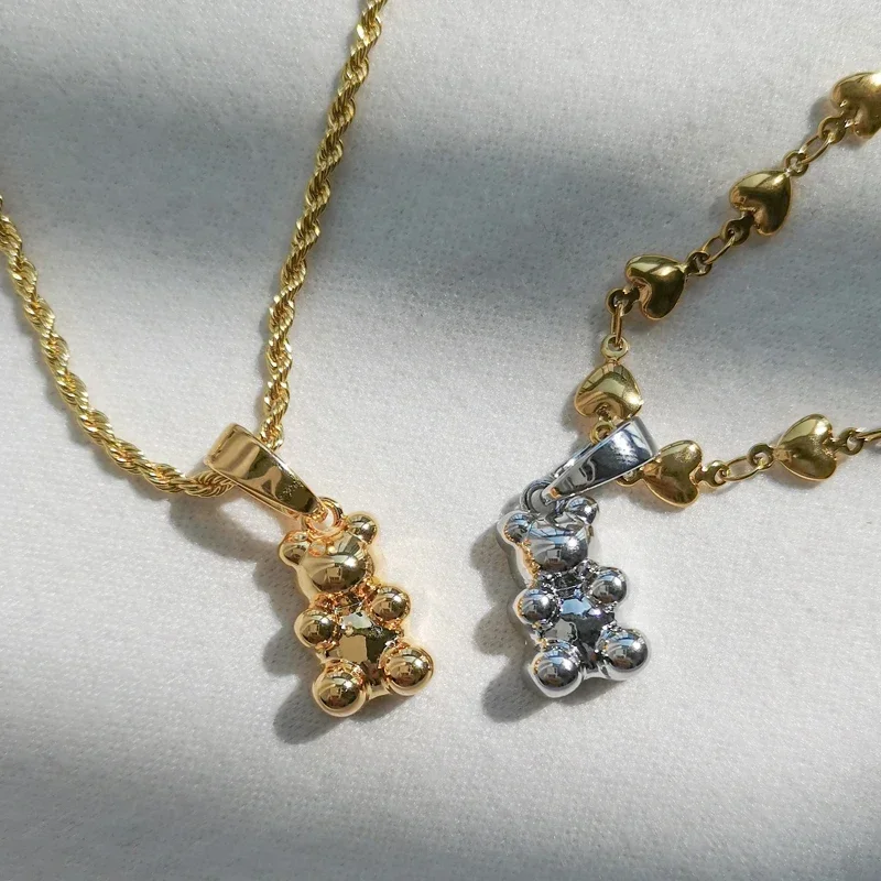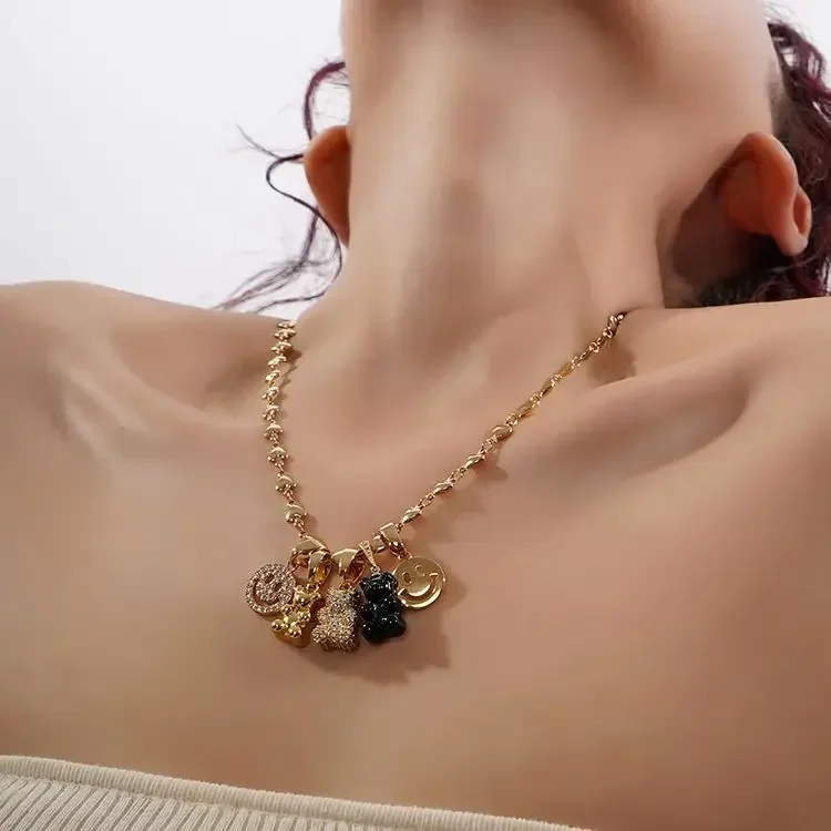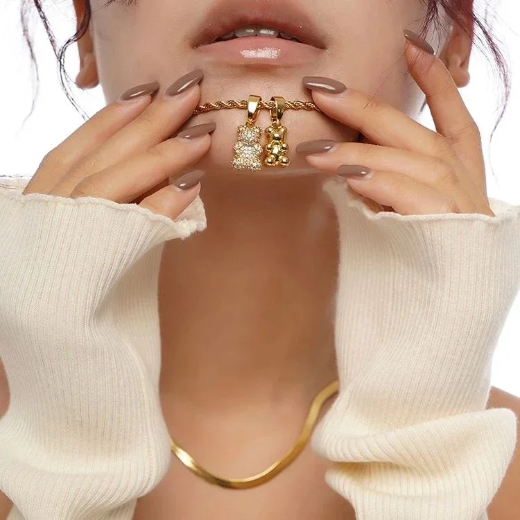 Van Daisy Colorido Bonito Resina Transparente Urso Strass Pingente Colar para Mulheres Homens Banhado A Ouro Hip Hop Coleiras Urso Jóias