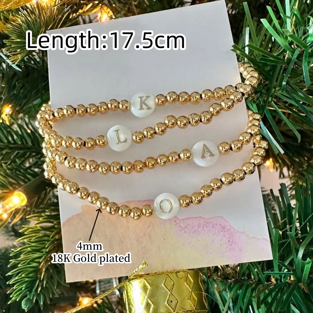 Vlen inicial a ~ z pulseiras elásticas 18 k banhado a ouro bola pulseira concha carta jóias para presente feminino alfabeto jóias vintage