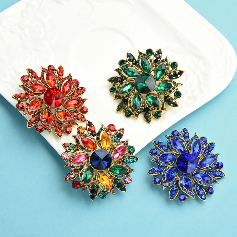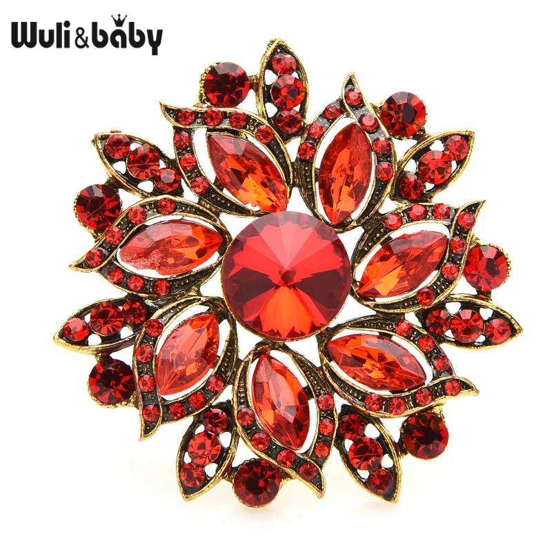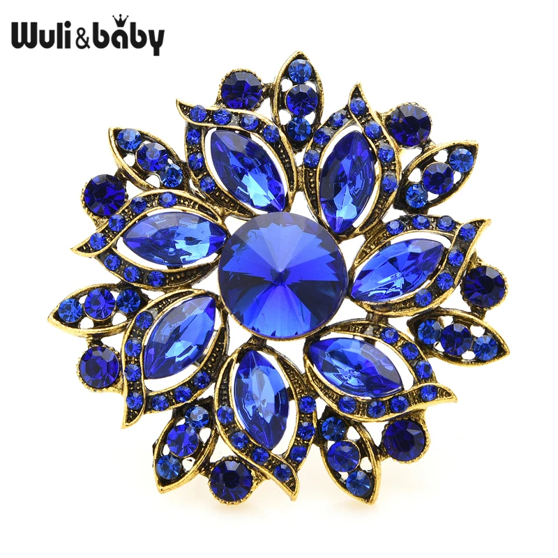 Wuli & baby luxo cristal sol flor broches para as mulheres 2020 novos casamentos escritório festa broche pinos presentes