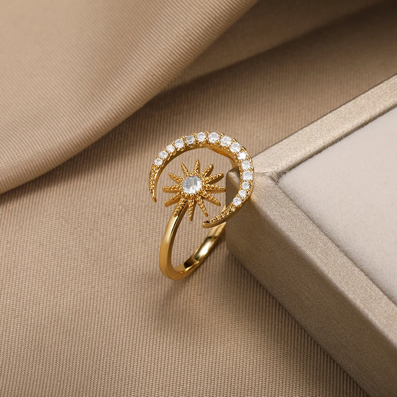 Zircão estrela lua anéis para mulheres cor de ouro aço inoxidável geométrico estrela lua anel noivado casamento natal jóias presente