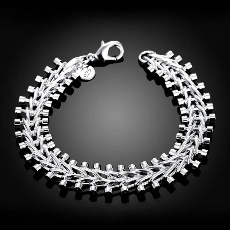925 Sterling Silver Fish Bone Pulseira para homens e mulheres, corrente de moda, festa de casamento, presentes de feriado, joalheria fina, quente, 1.3cm