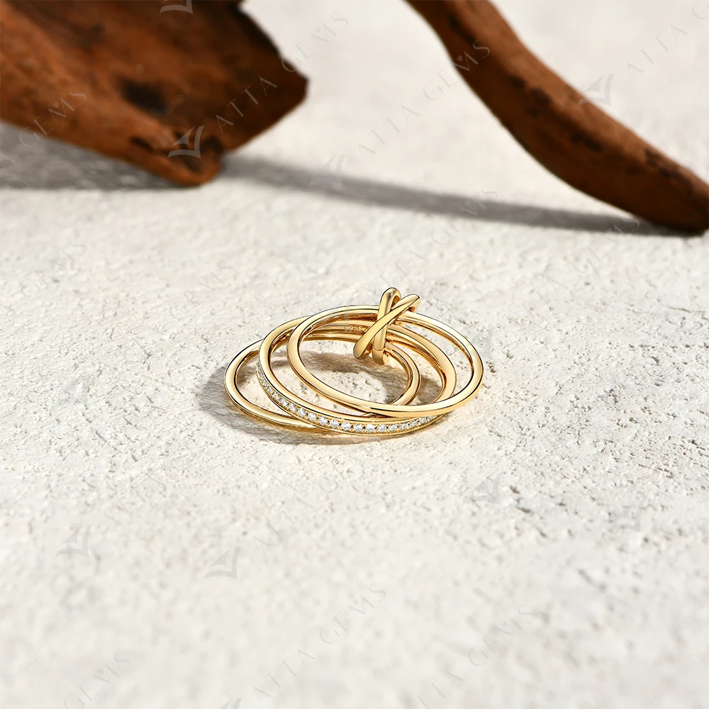 Anel de banda de moissanite fino charmoso s925 prata esterlina diamante brilhante para mulheres 3 anéis conectados para presentes de joias de noivado