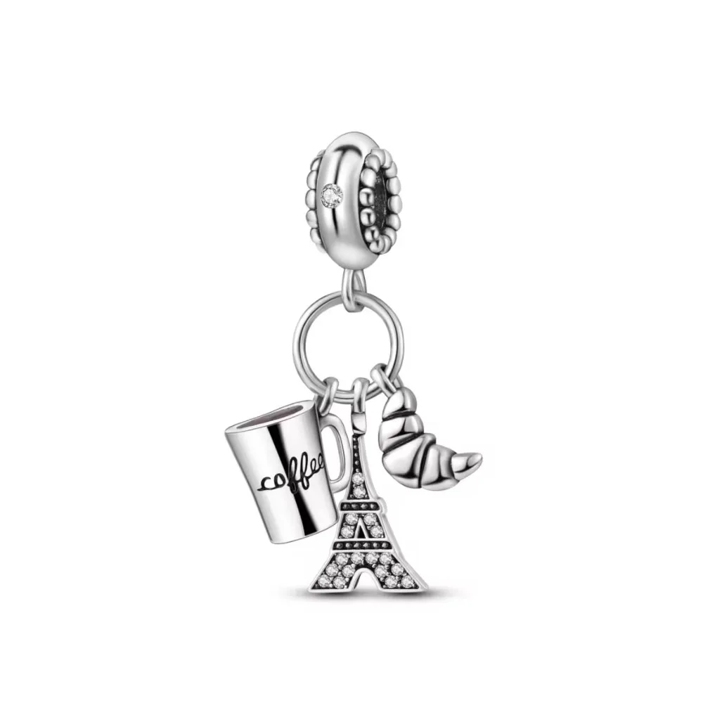 Novo 925 prata fina xícara de café pingente caber pulseira original diy jóias feminino garrafa de vidro vinho bebida charme coração vermelho clipe grânulo