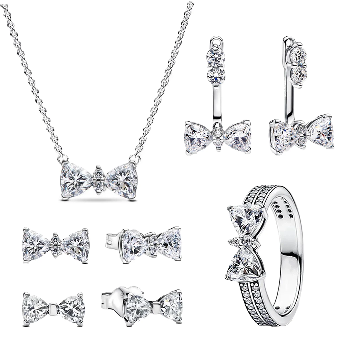 Novo original 925 prata esterlina colorido arco conjunto colar anel brinco brilhante para presente de aniversário dos namorados feminino jóias diy