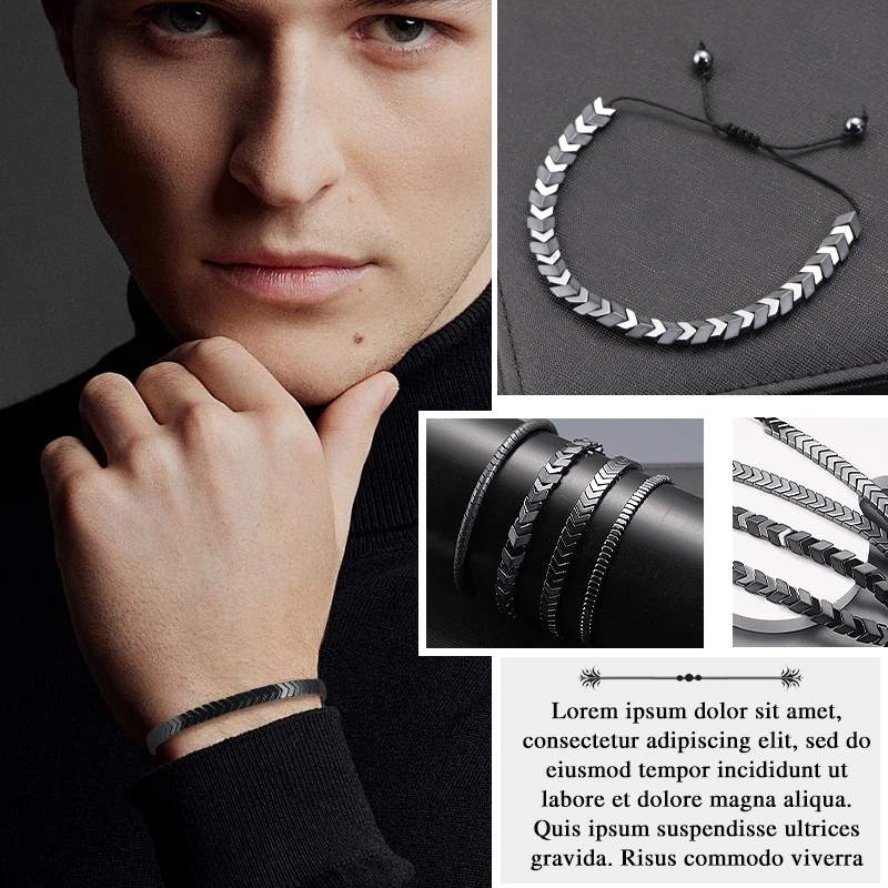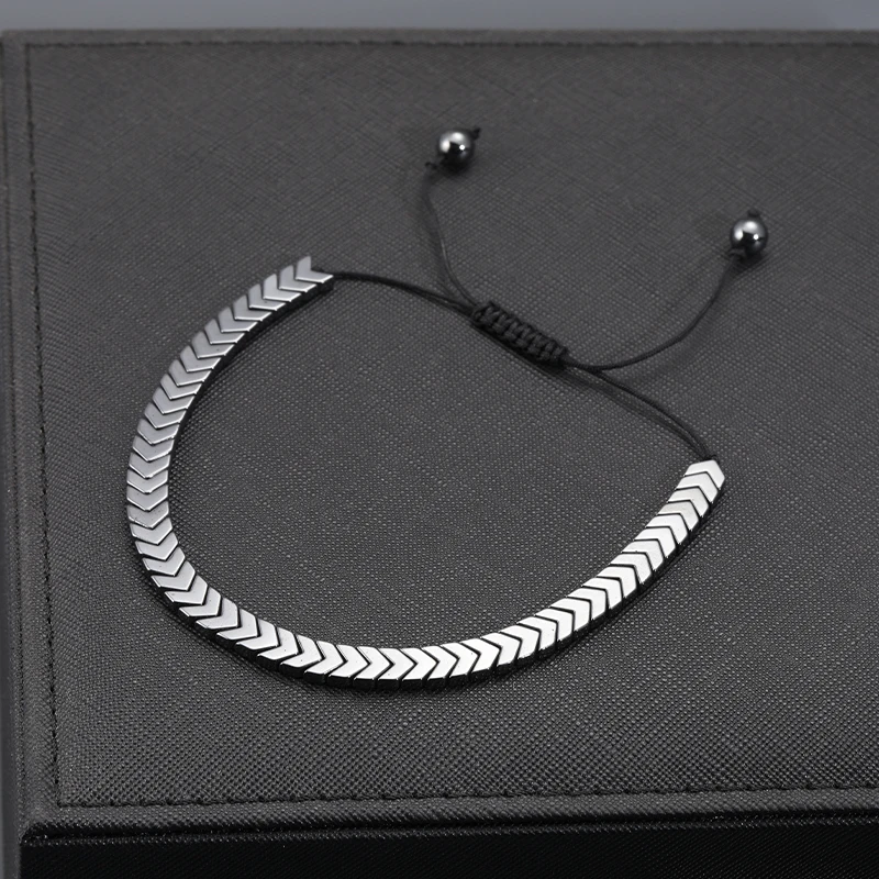 Pulseiras de contas de pedra em forma de seta de hematita pulseira de peso para mulheres homens moda cuidados de saúde joias unissex