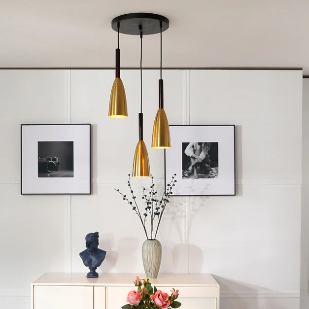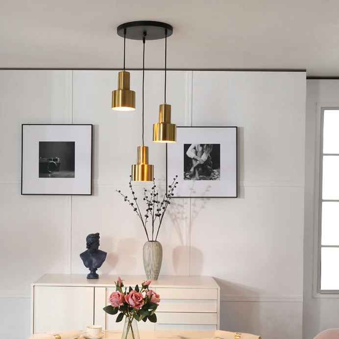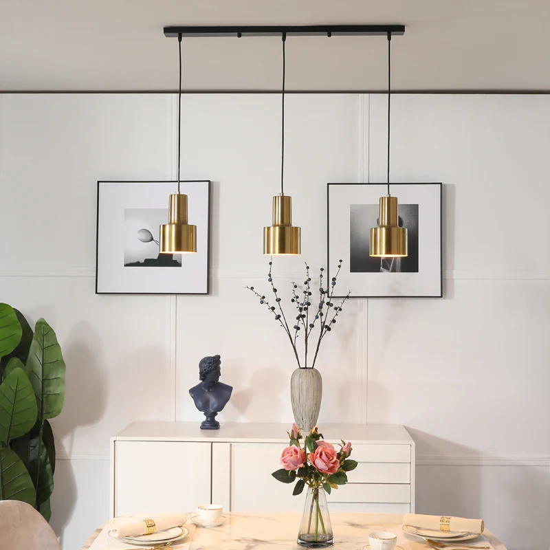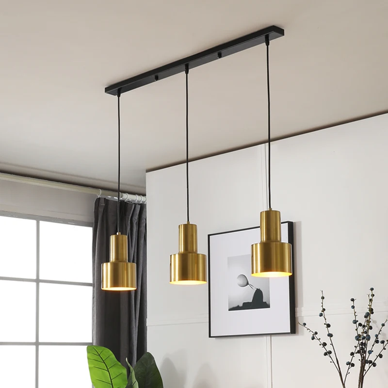 Quente e simples quarto estudo lustre personalidade restaurante bar três cabeça luminária de metal luz pingente ouro