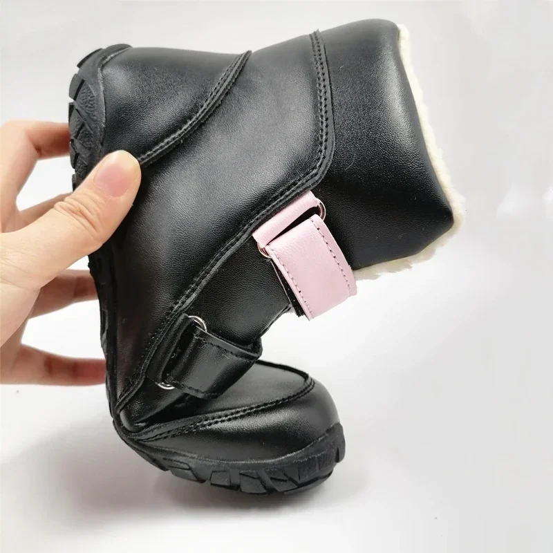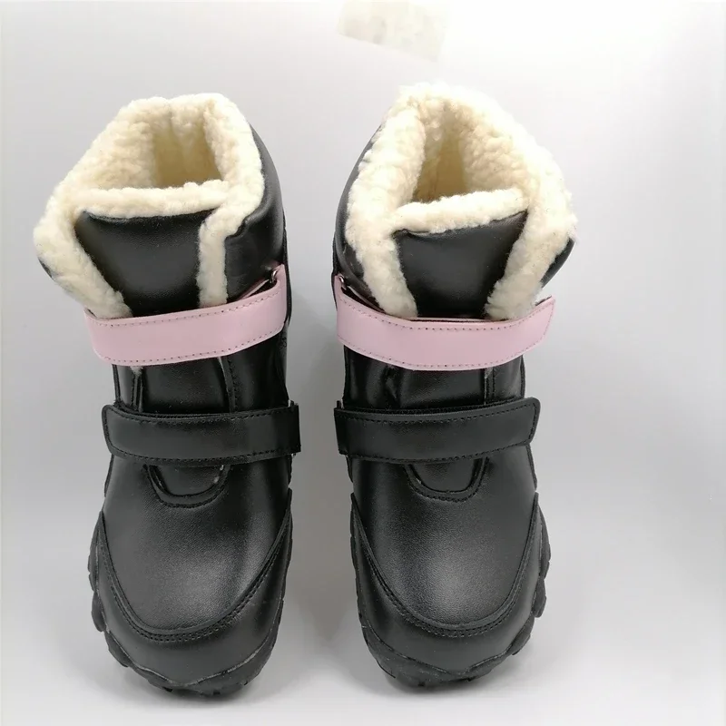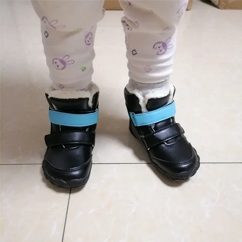 Zzfaber crianças sapatos botas de inverno descalços botas de neve de pelúcia de couro macio para meninas meninos crianças botas quentes flexíveis ao ar livre