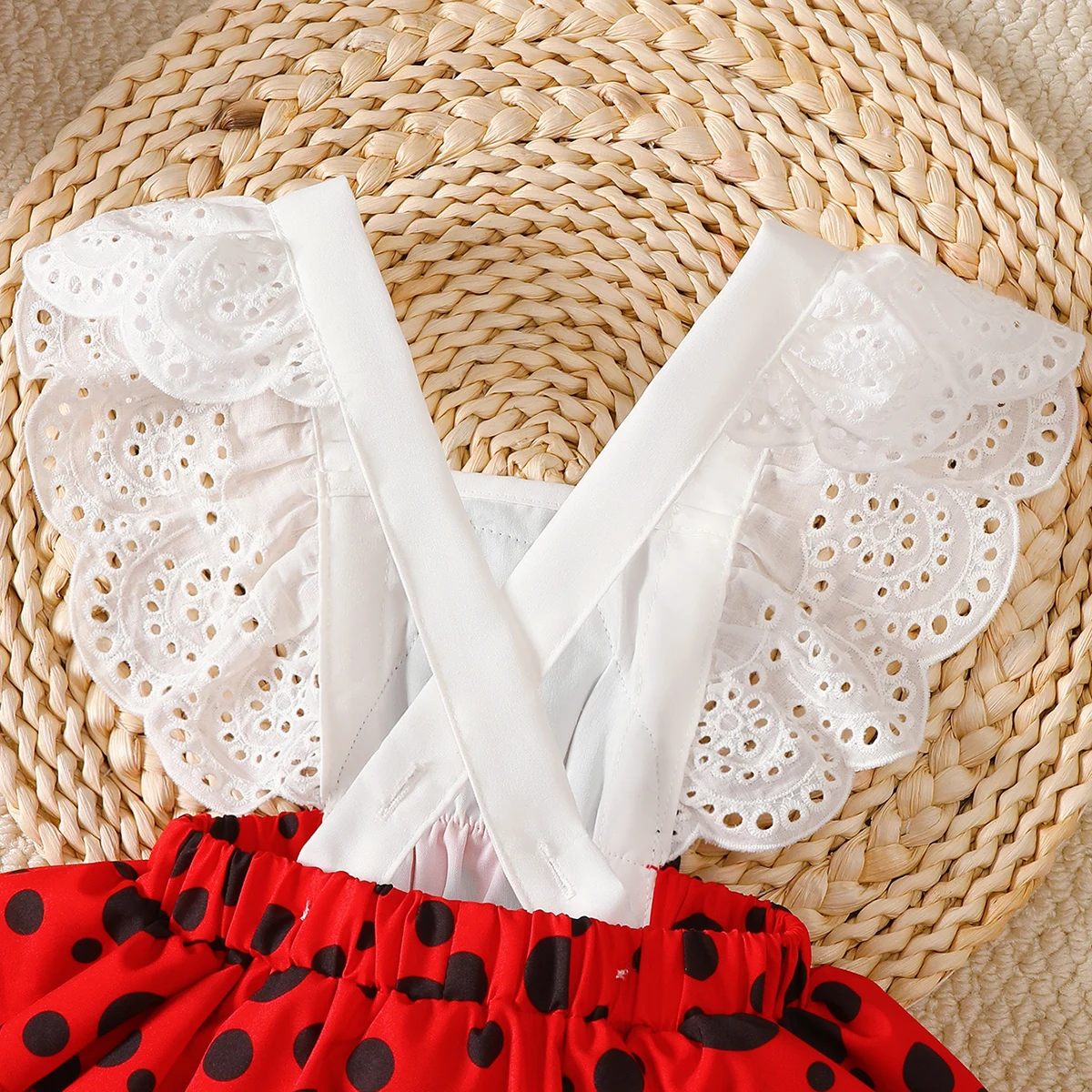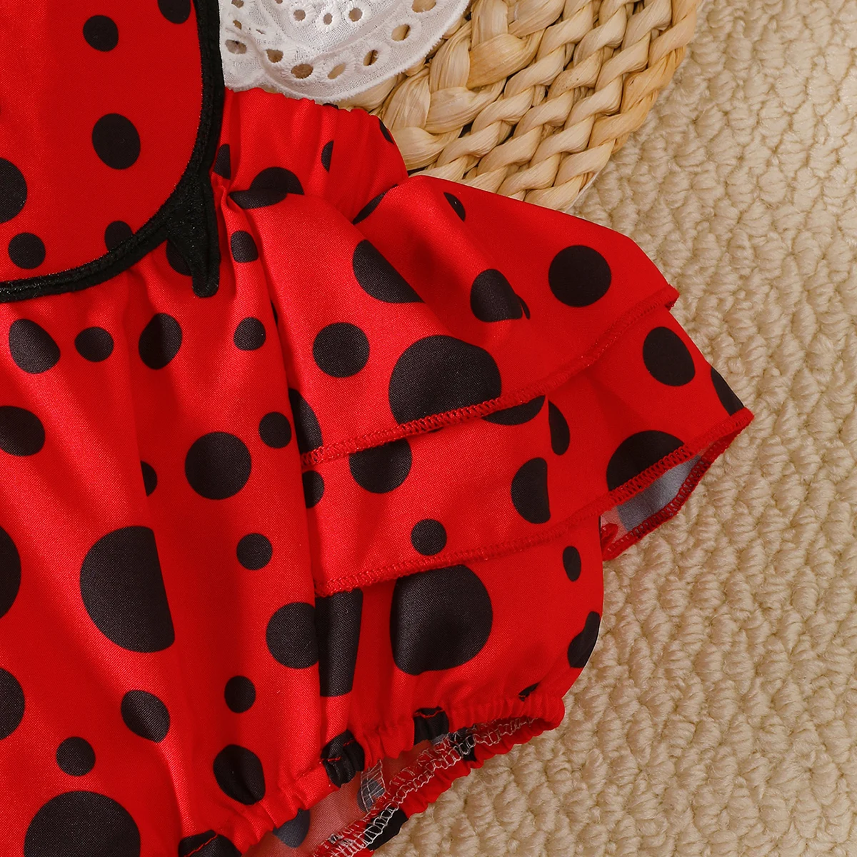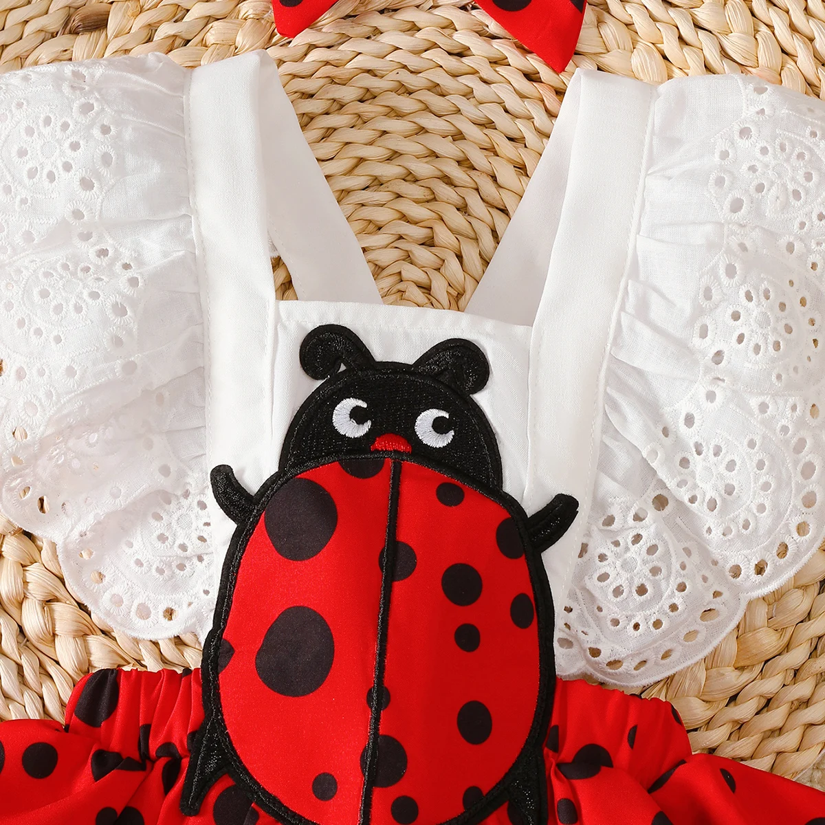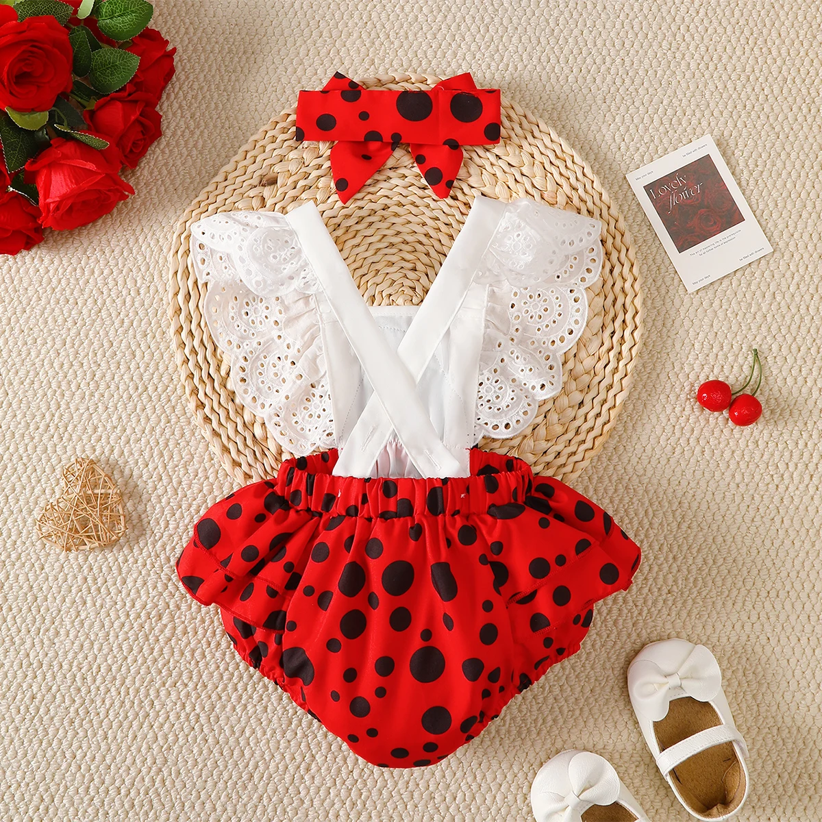 Body para bebês recém-nascidos, conjunto de 2 peças com renda e estrela, joaninha, faixa de cabeça, conjunto de 2 peças para bebês de 0 a 18 meses, body de verão para bebês