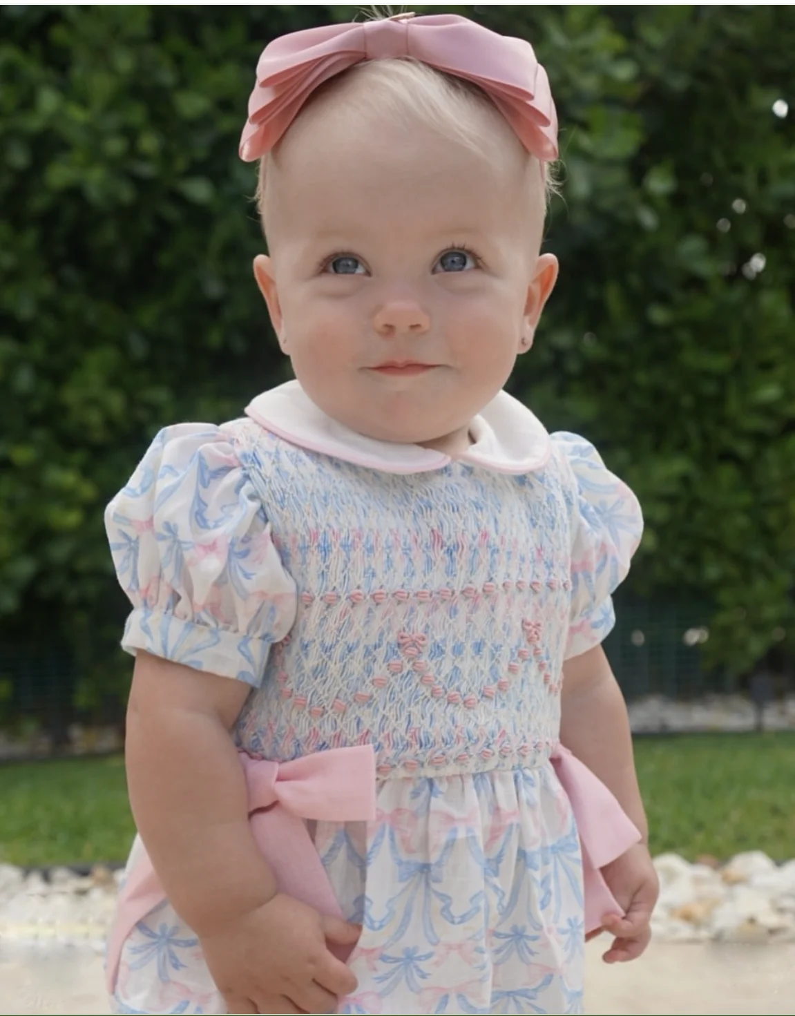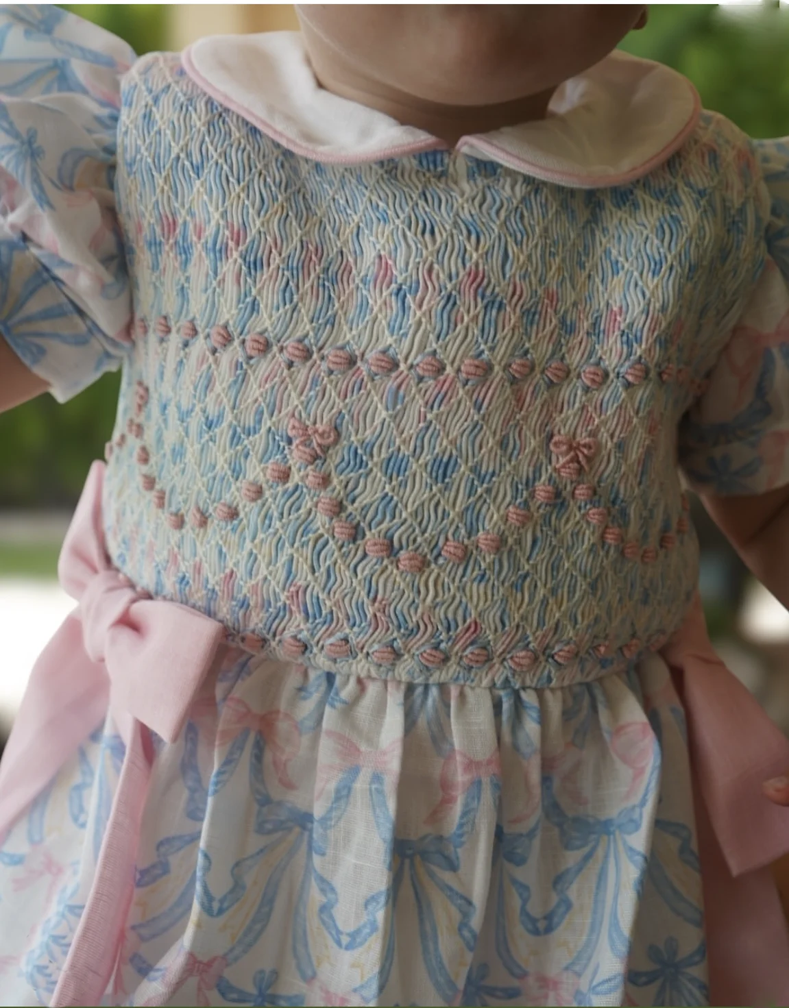 0-6 anos bebê menina bordado artesanal smocked azul floral macacão para aniversário festa de férias eid casual a29