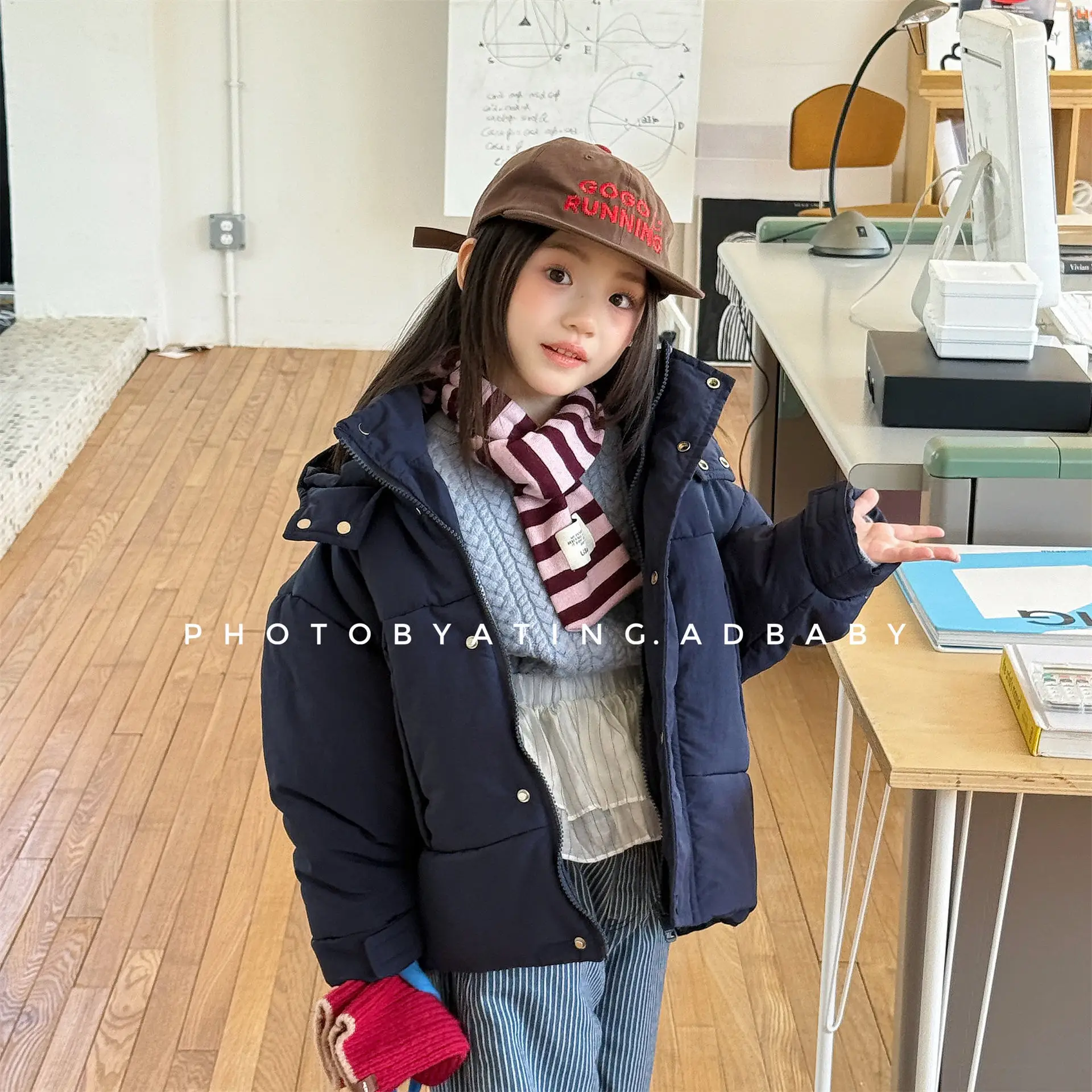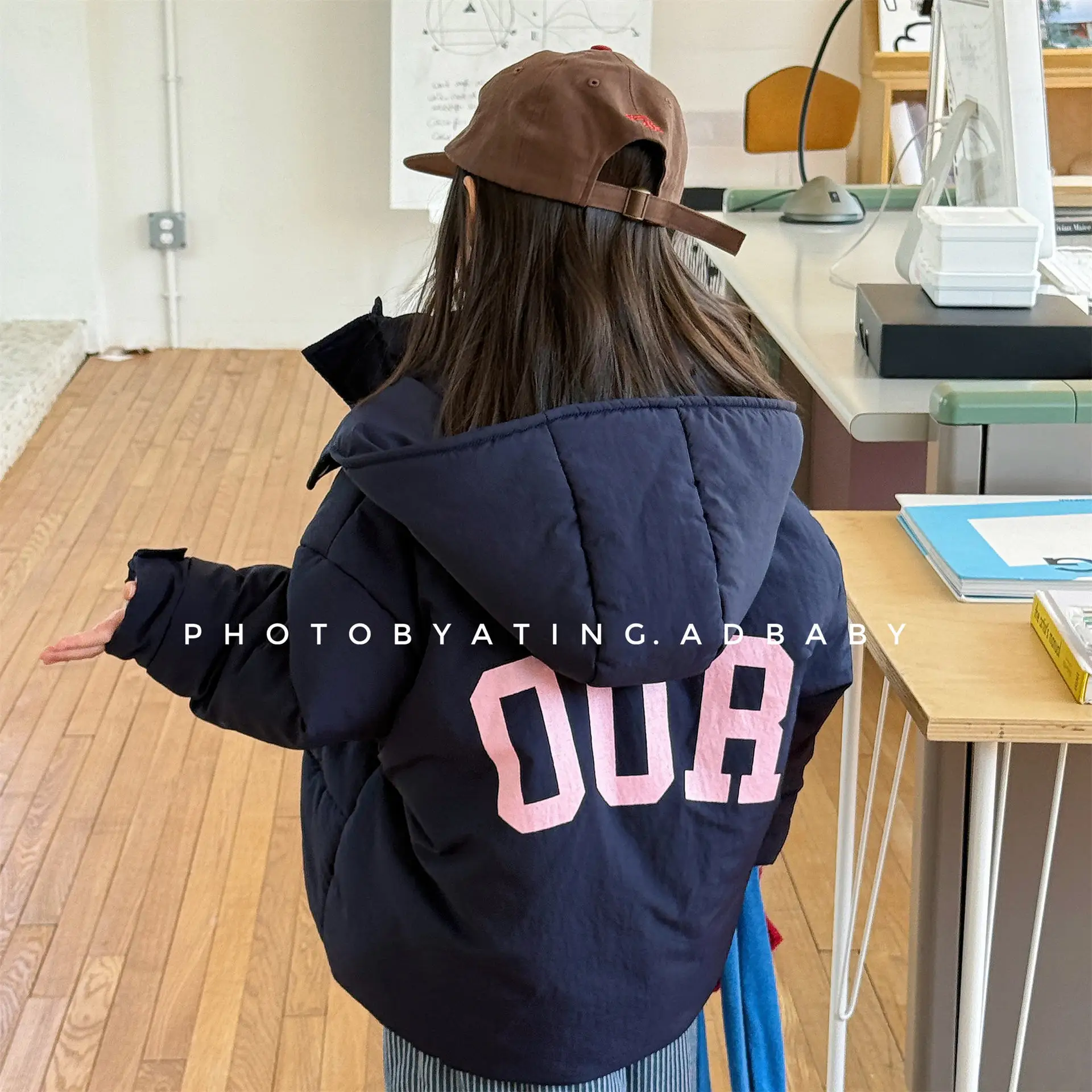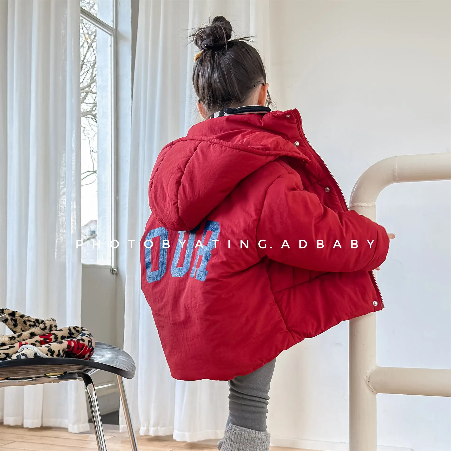 2025 inverno novas crianças manga longa carta impressão com capuz jaqueta meninos meninas mais veludo grosso casaco do bebê casual acolchoado jaqueta