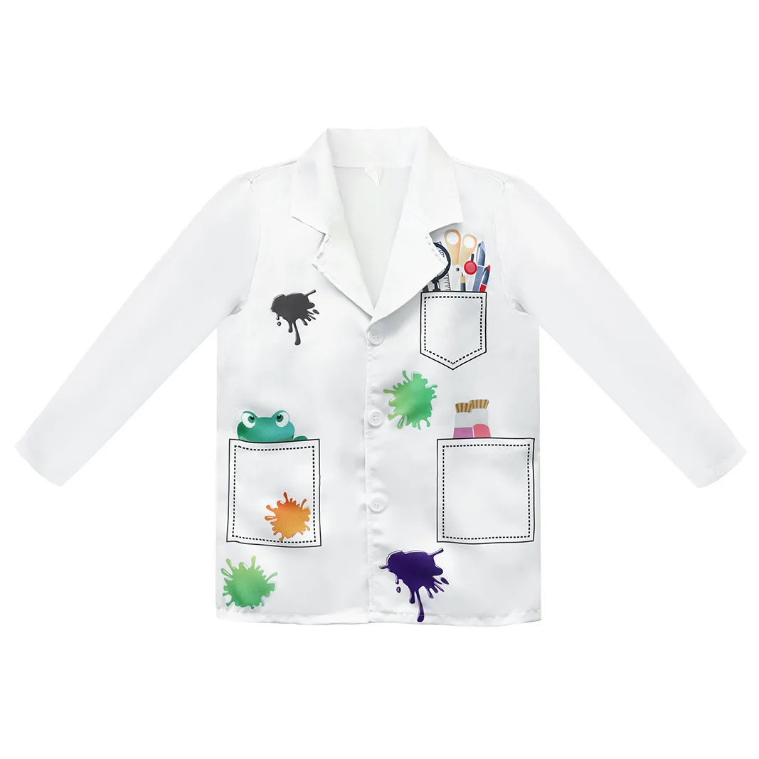 4 pçs meninos jaleco branco manga longa encantador cientista uniforme trabalho wear roupas de laboratório para 3-14y menino festa fantasia dressup