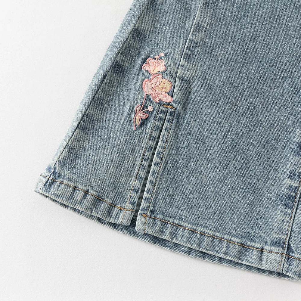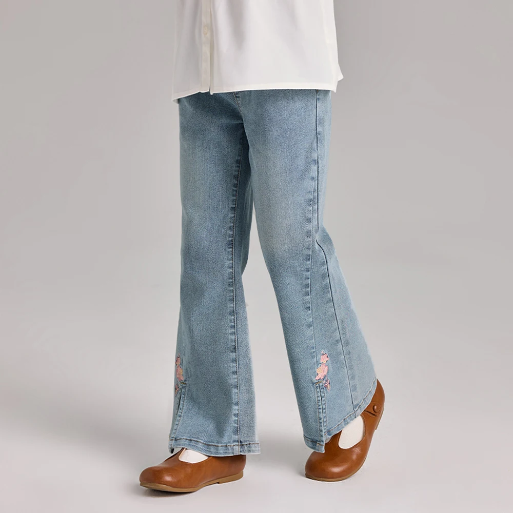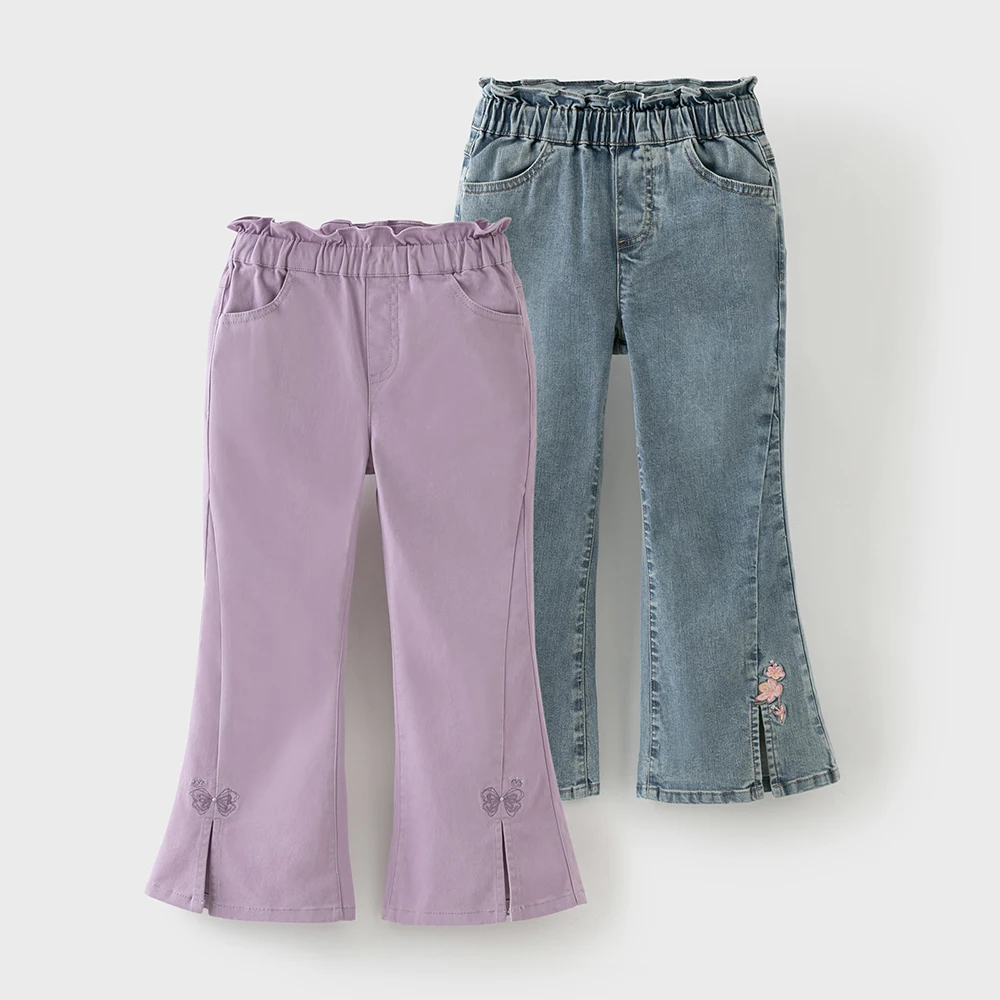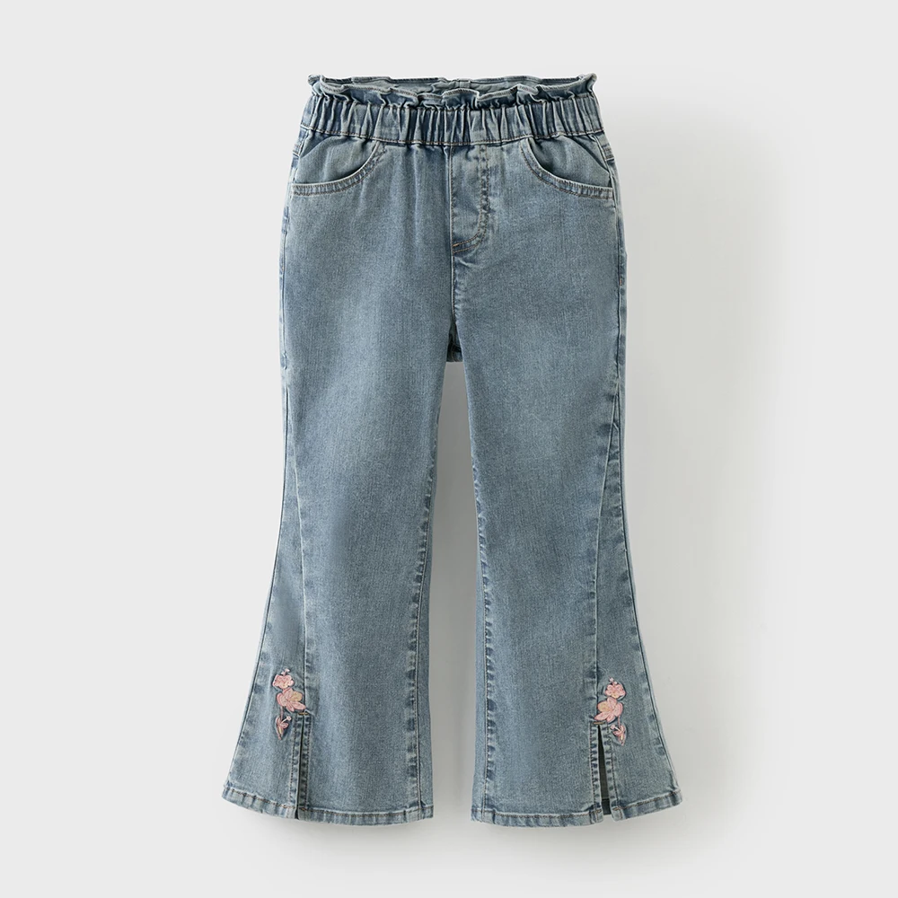 Dave bella primavera menina calças bordadas moda casual cintura elástica bootcut calças jeans crianças alargamento festa formal dk1260340