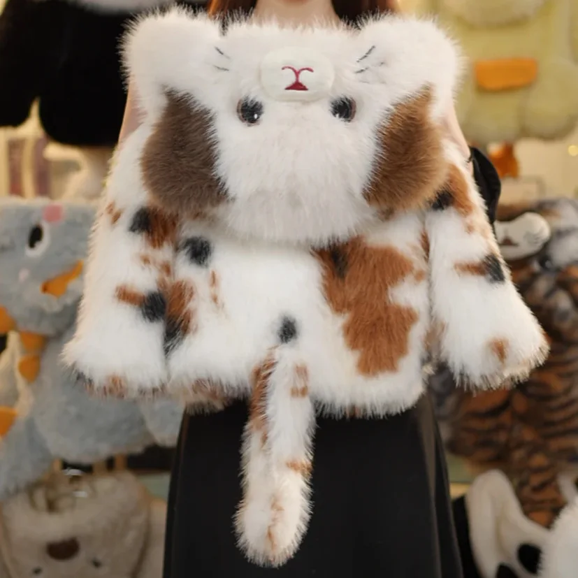 Engrossado jaqueta de inverno para meninas bonito gato dos desenhos animados casaco de pele do falso outono inverno com capuz outerwear à prova de vento crianças roupas