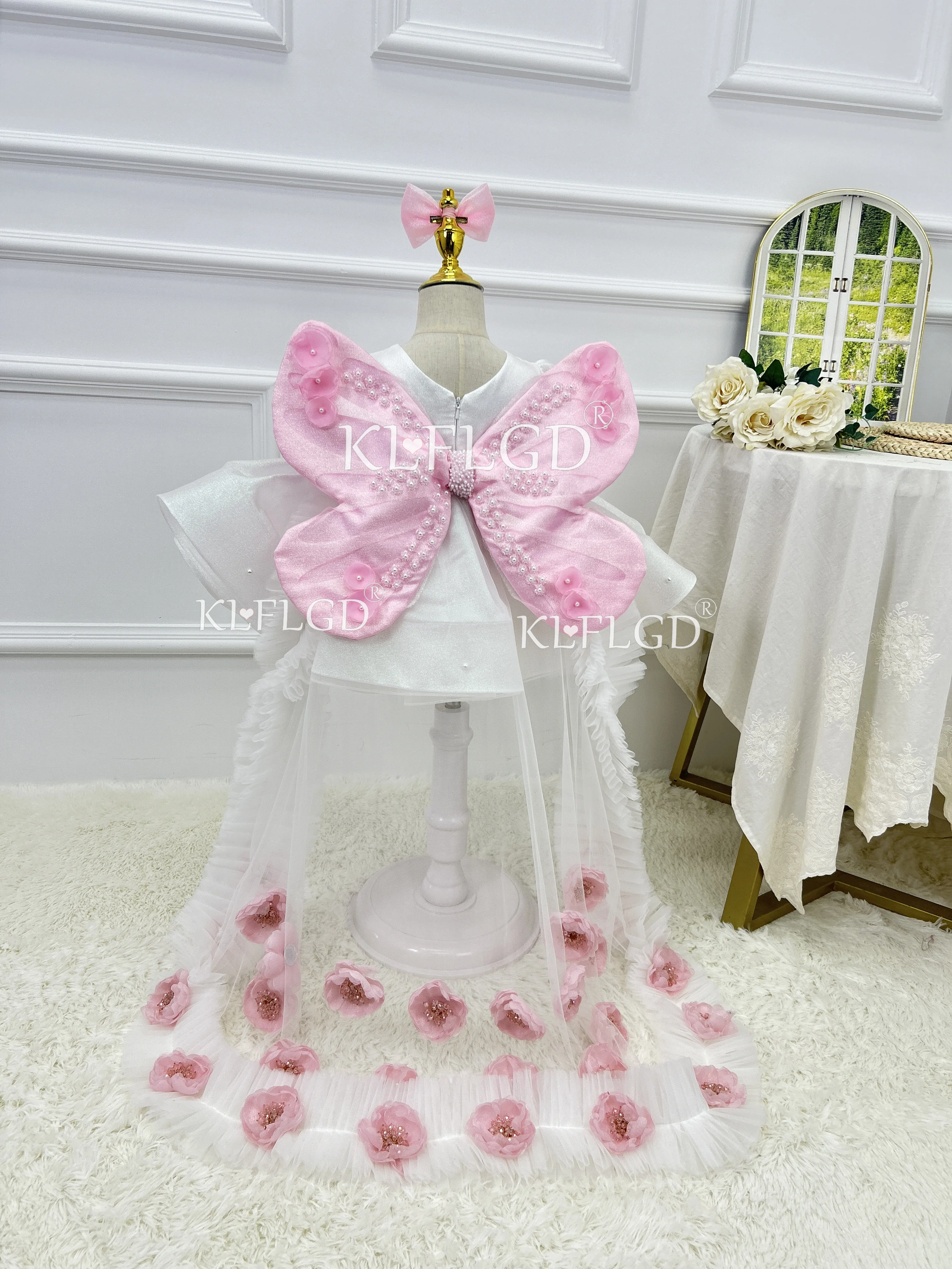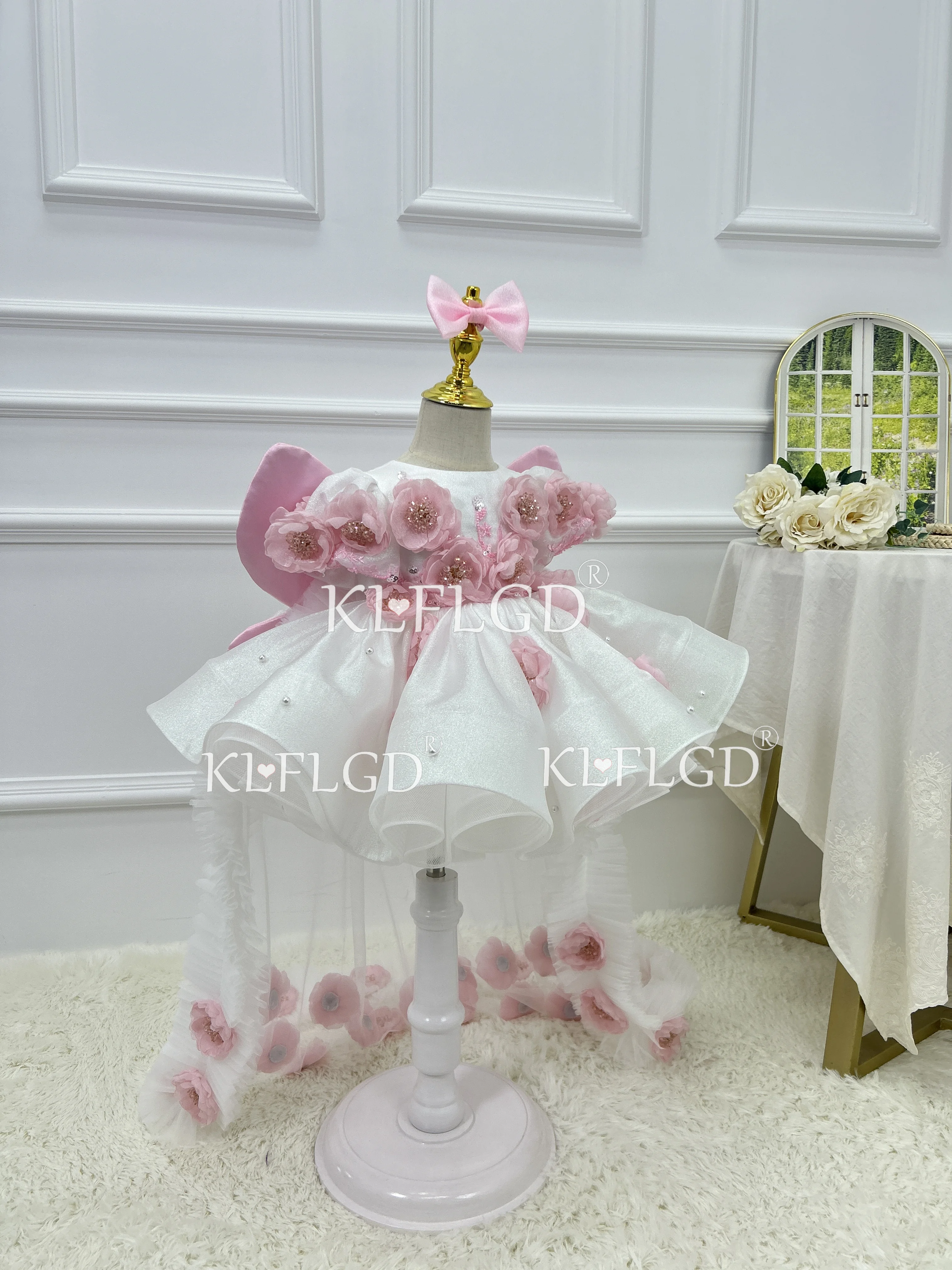 Luxuoso e elegante meninas festa de aniversário vestido de noite flor menina requintado vestido de cauda bebê traje de desempenho de natal