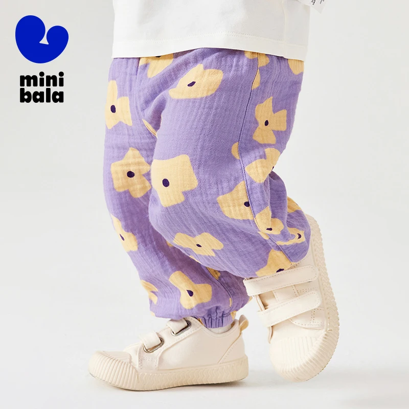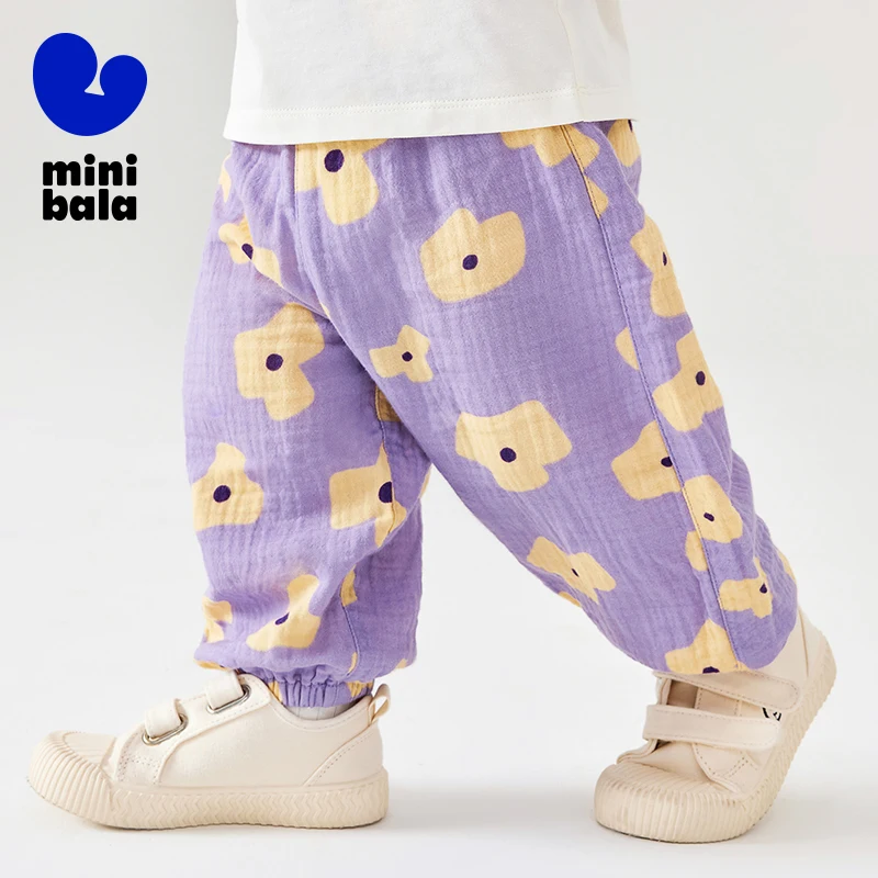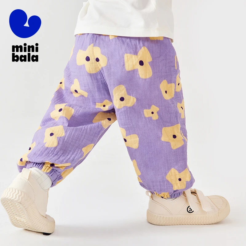 Mini bala meninos e meninas calças verão de secagem rápida à prova de mosquitos solto pele-amigável macio puro algodão calças compridas para ao ar livre
