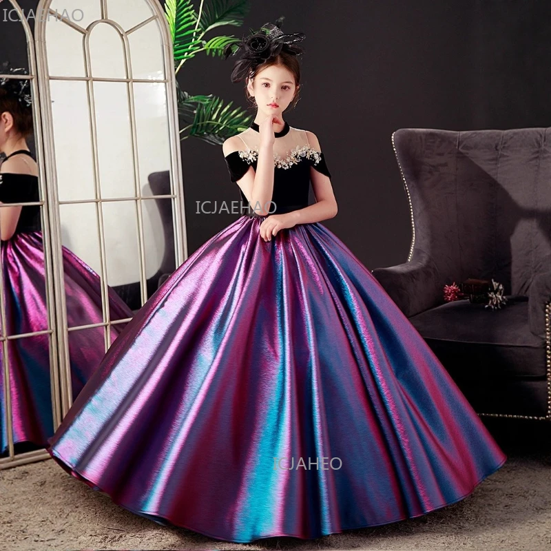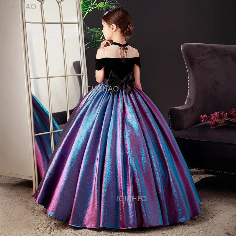 Novo Vestido de Princesa Elegante para Meninas Negras, Modelo de Vestido Longo para Aniversário, Traje Formal Infantil para Celebrações