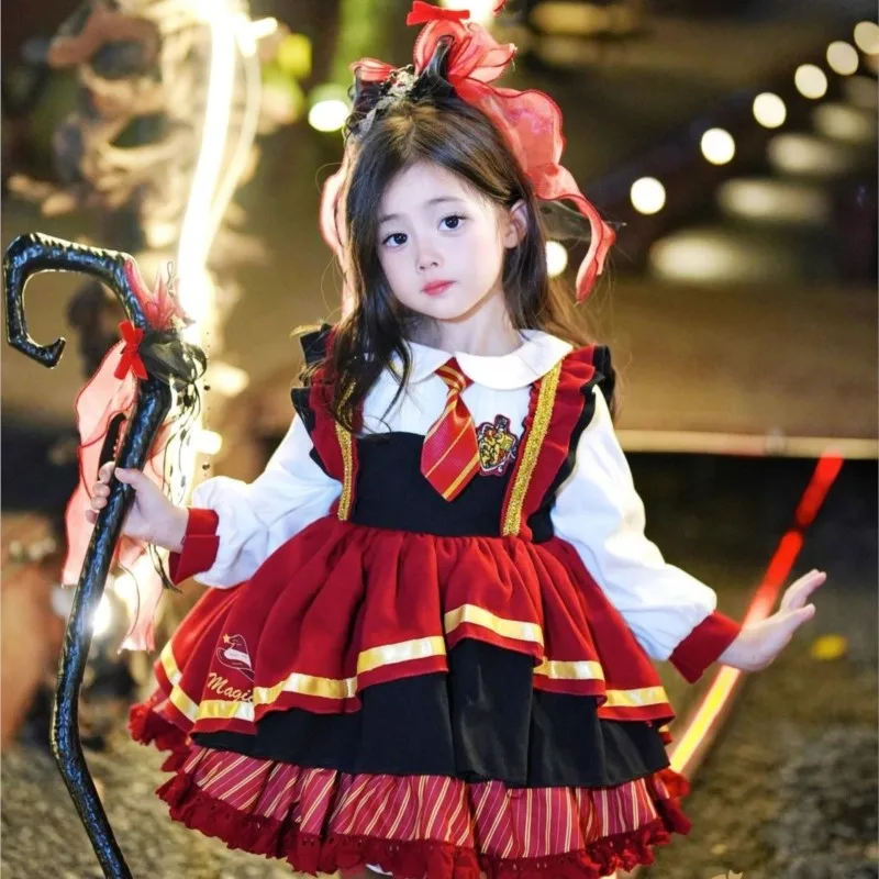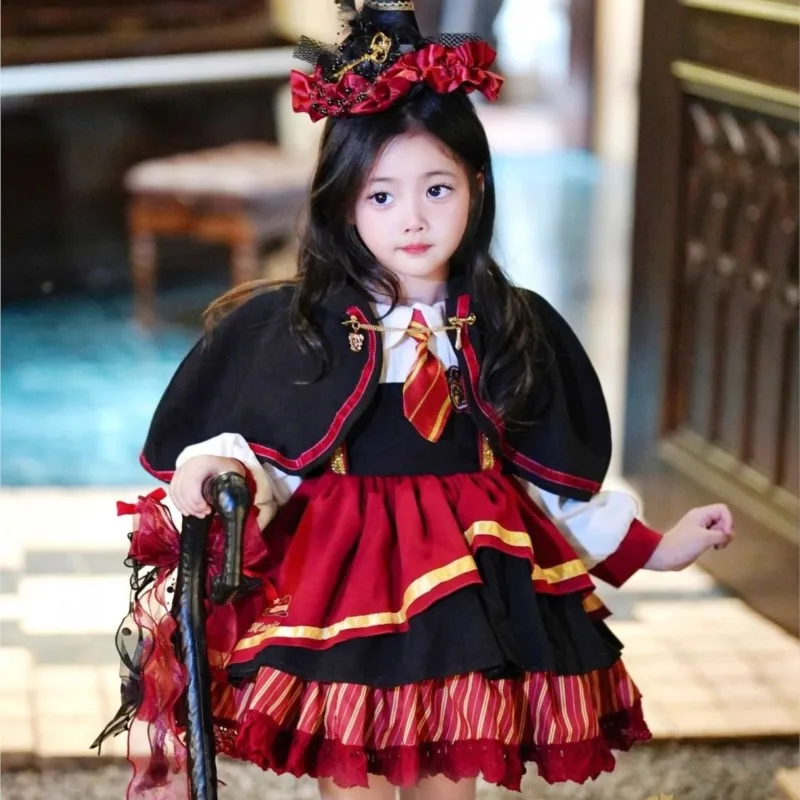 Saia Infantil Fofa e Respirável para Cosplay 2026, Vestido Estilo Academia para Festivais Infantis, Vestido de Princesa Lolita Moderno para Meninas LI836