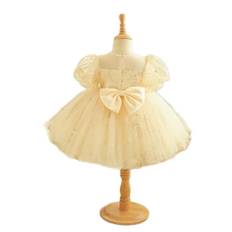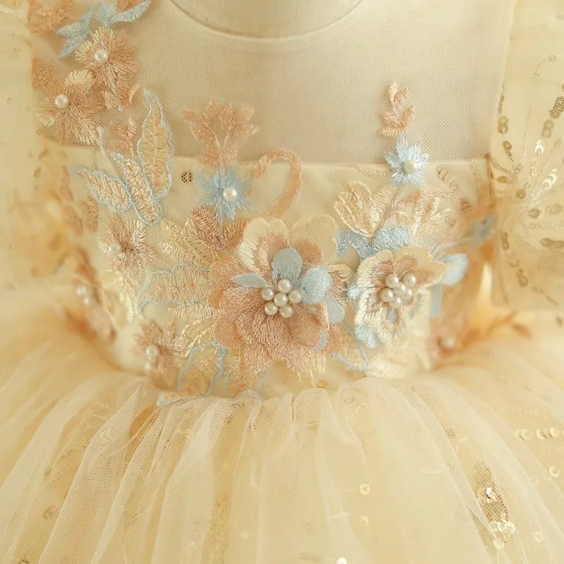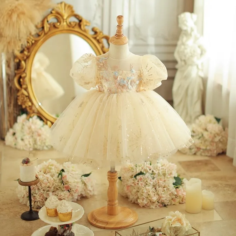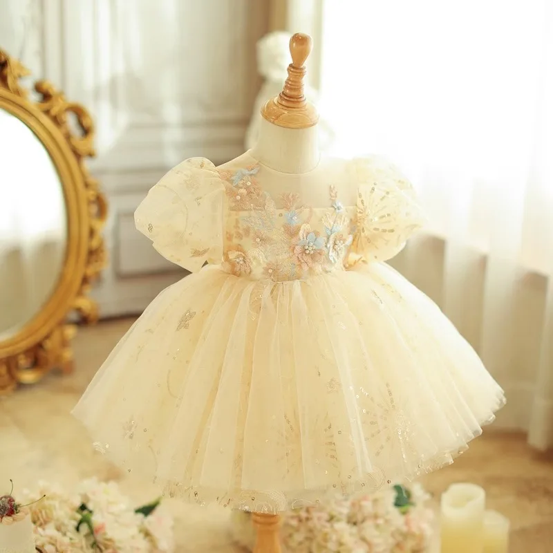Vestido de princesa infantil, vestido de tule inchado para meninas, vestido pequeno de flor para primeiro aniversário, festa de piano, vestido de noite novo m