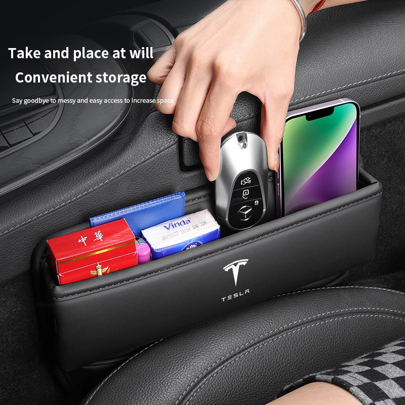 Assento de carro gap multifuncional fenda armazenamento caixa couro para tesla modelo 3 modelo y modelo s modelo x acessórios interiores automóveis