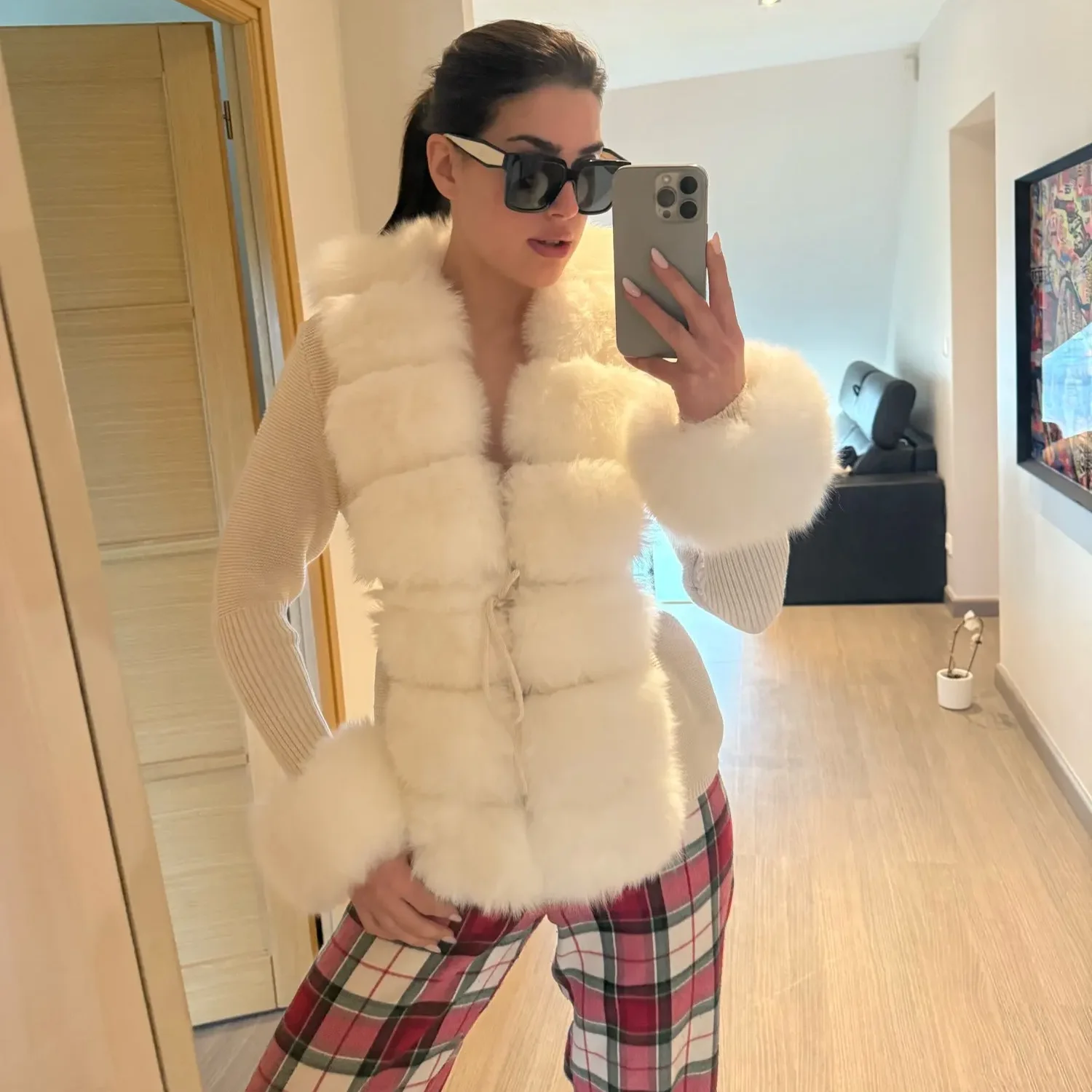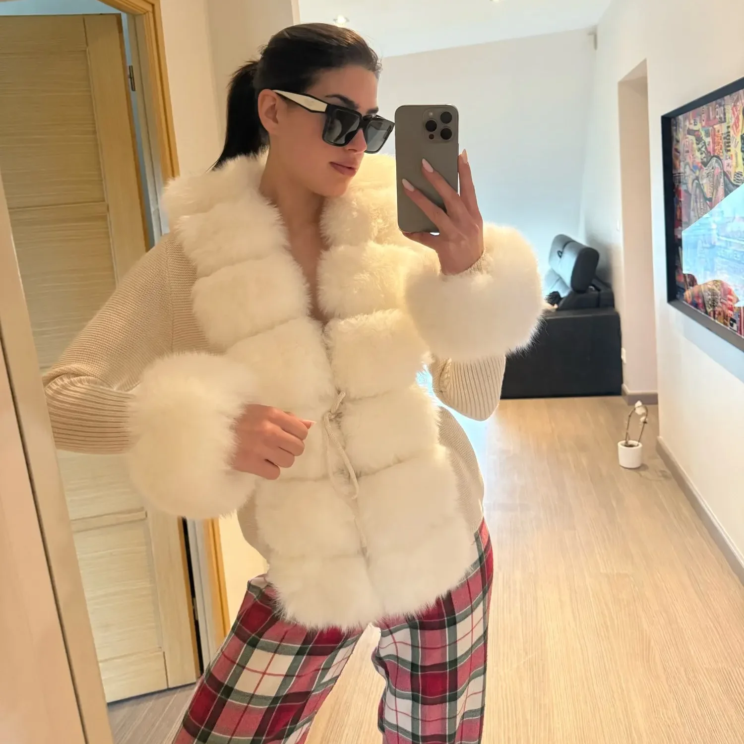 Primavera e outono feminino camisola cardigan jaqueta com gola de pele de raposa real jaqueta de pele de raposa natural jaqueta feminina