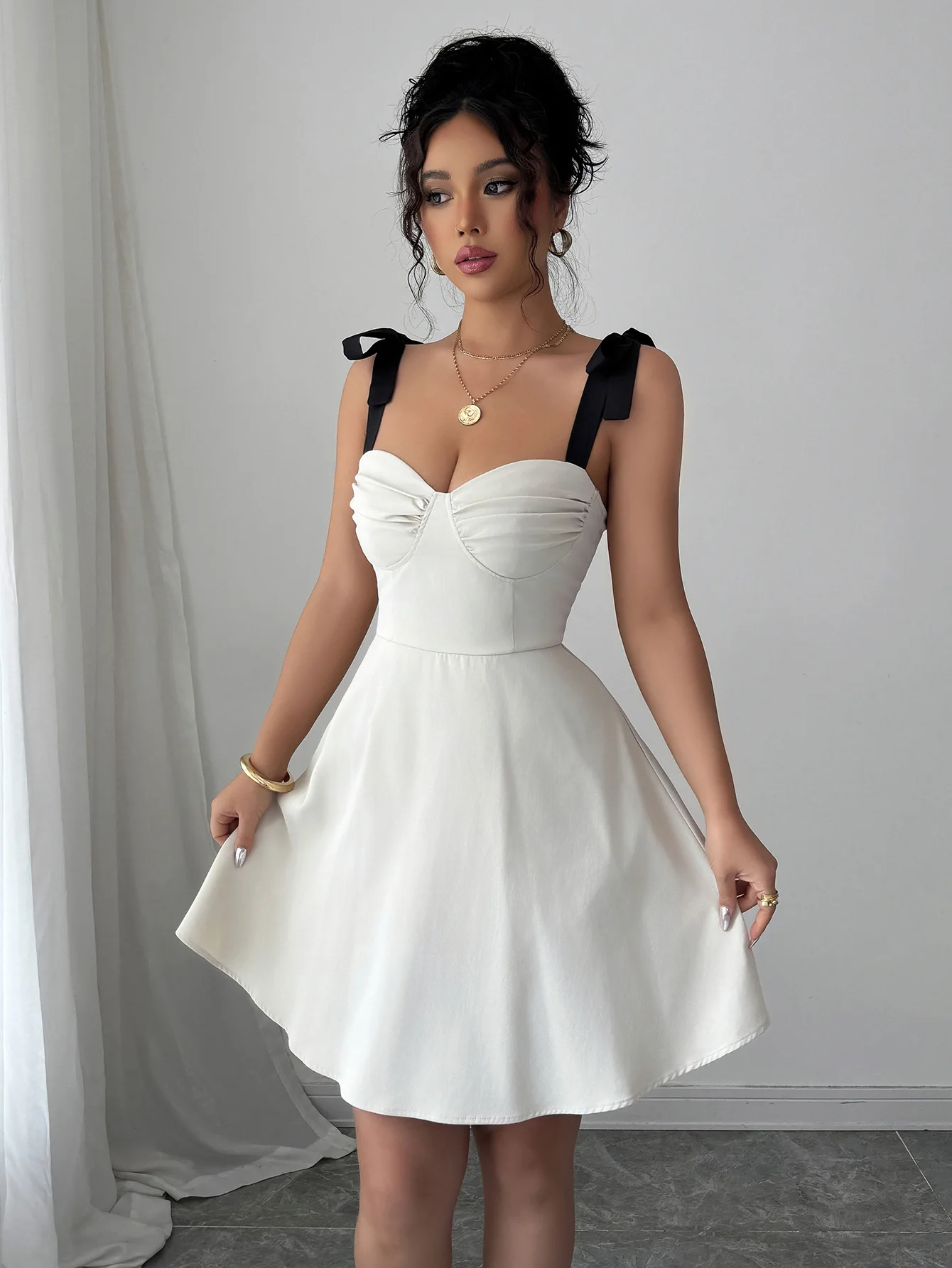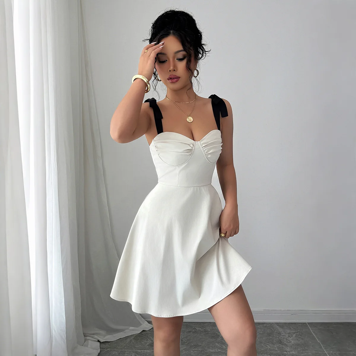 Alta qualidade venda quente atacado temperamento estilo elegante suspender sem alças meia saia vestido roupas femininas 2025 verão