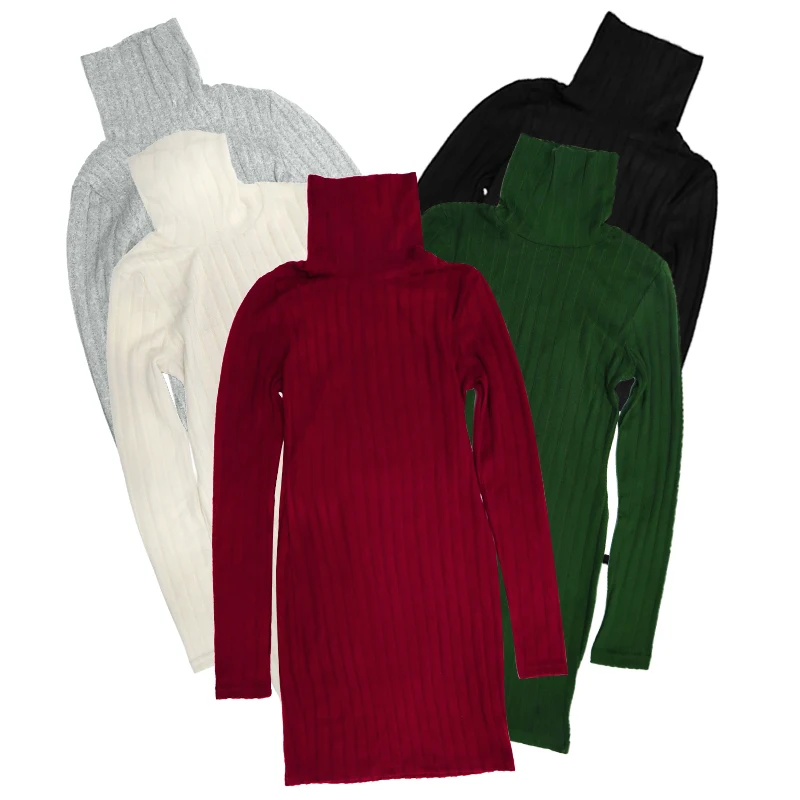Outono inverno novos vestidos femininos mangas compridas gola alta sólida sexy bodycon bainha mini vestido clube elegante festa vestidos de malha