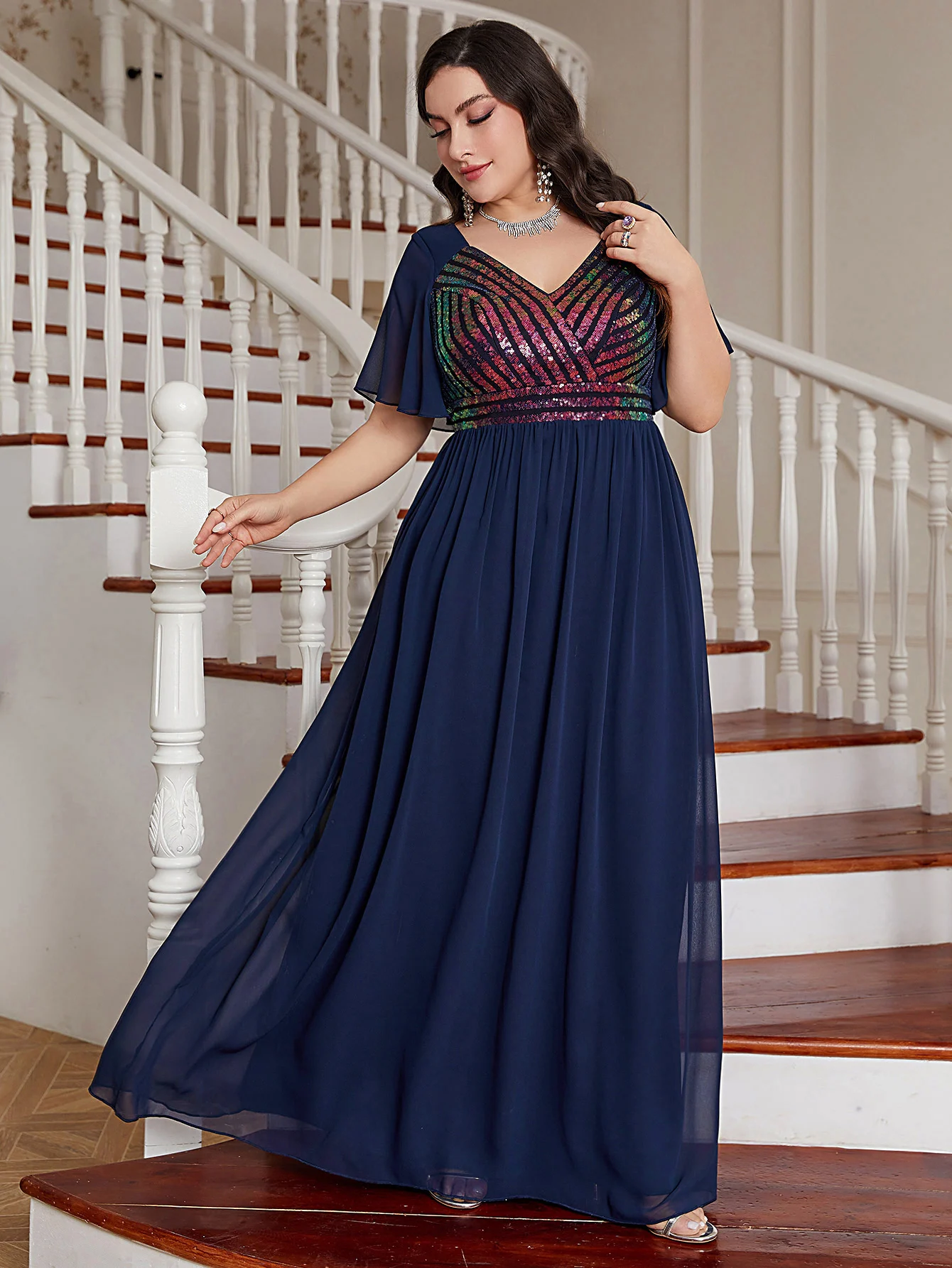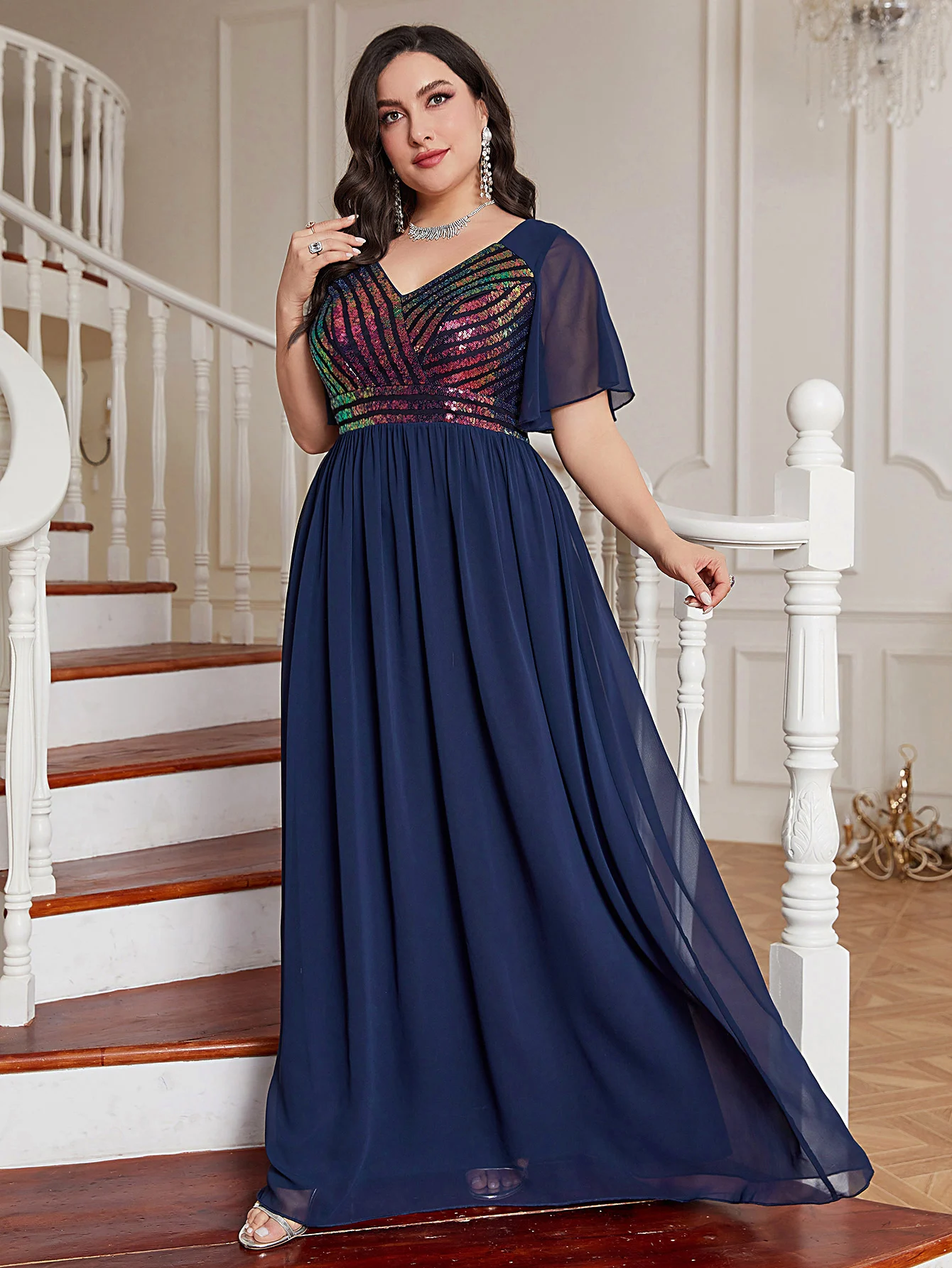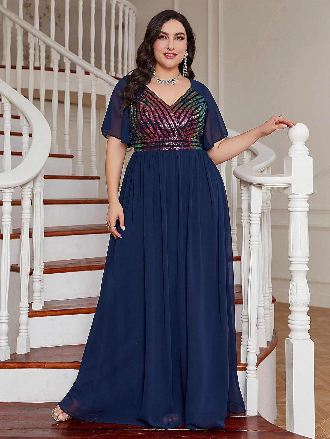 Vestido de noite formal de lantejoulas feminino, Uniforme, Lantejoulas, Coxa dividida, Contraste, Purpurina, Patchwork, Chiffon