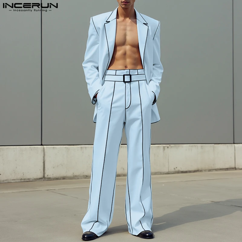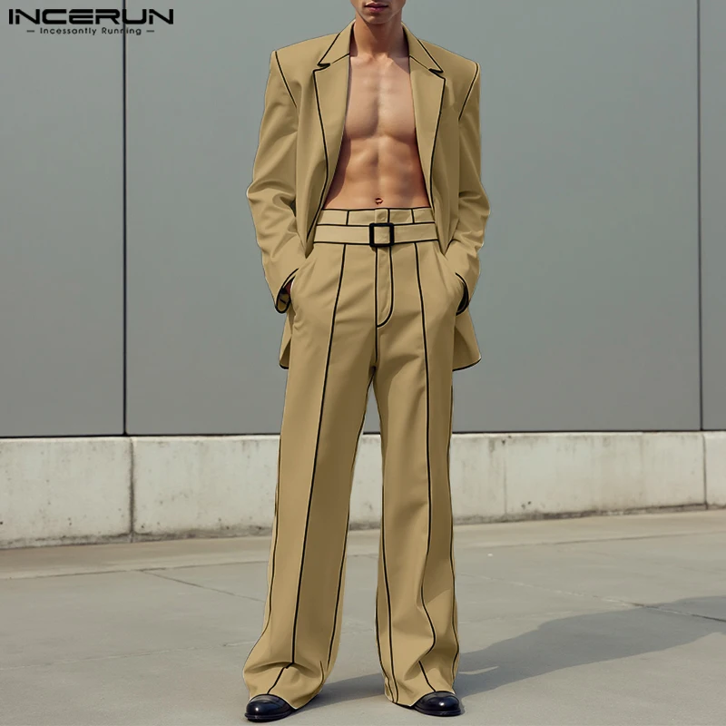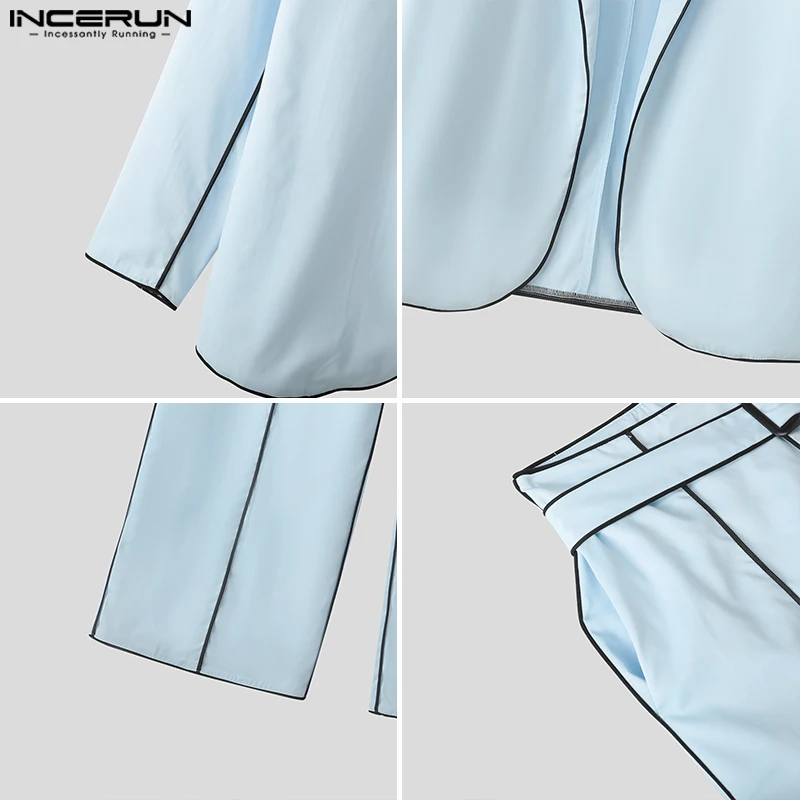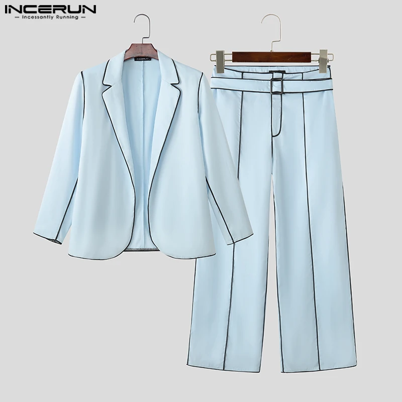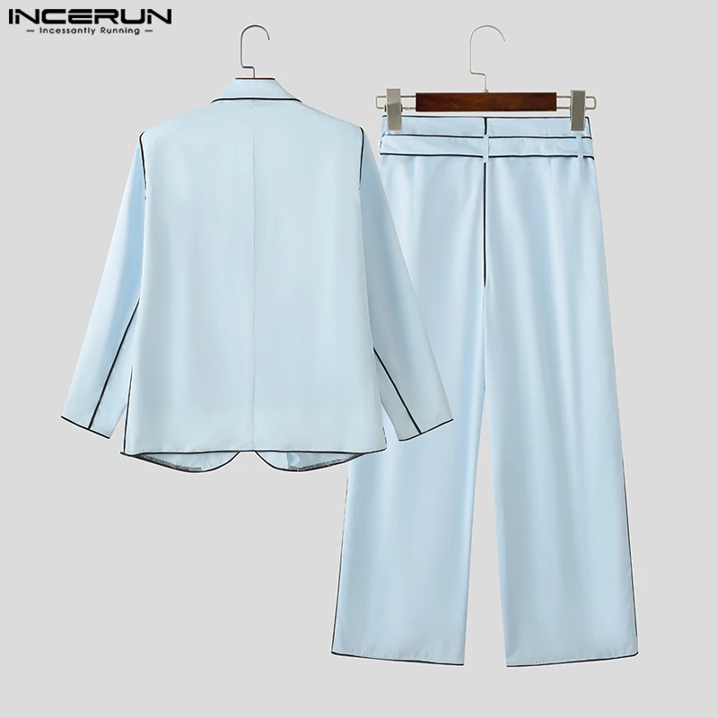 Incerun conjuntos masculinos retalhos lapela manga longa blazer & calças duas peças define streetwear solto elegante moda masculina ternos casuais