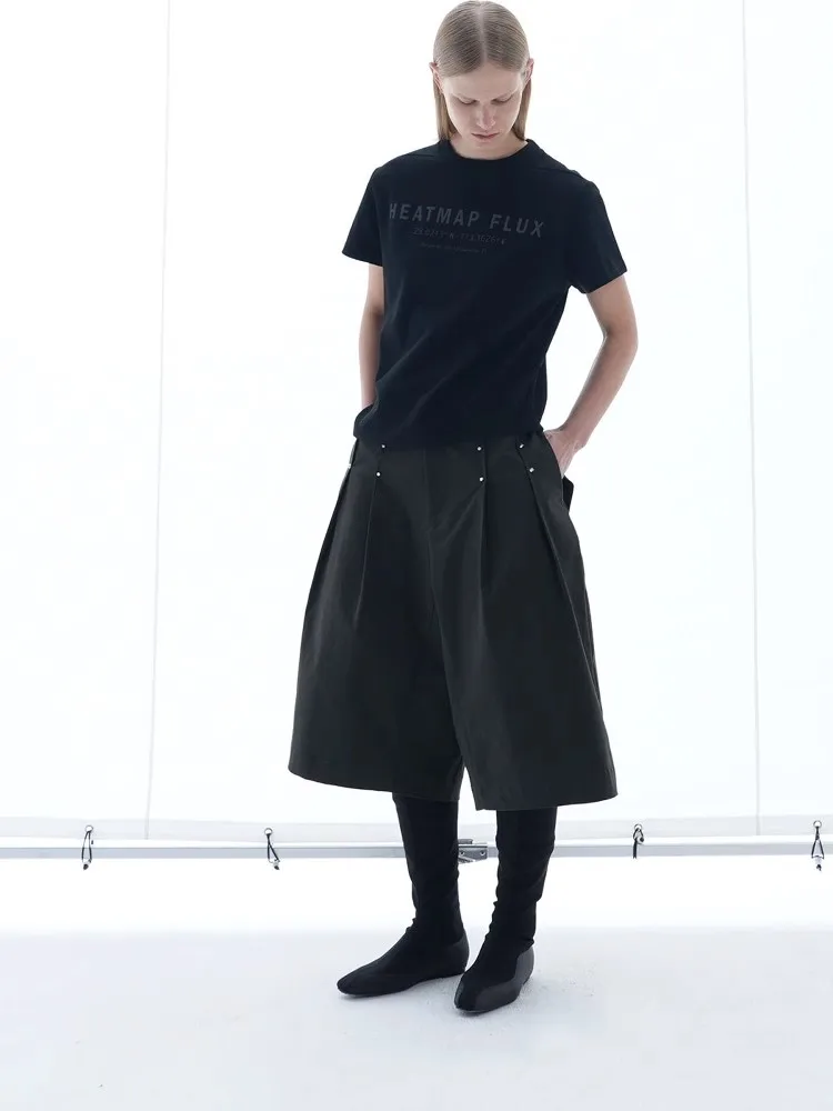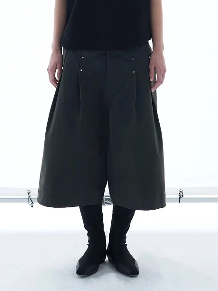 Mauroicardi primavera verão legal bonito solto casual baggy shorts para homens rebites de metal na altura do joelho calças roupas de perna larga 2025