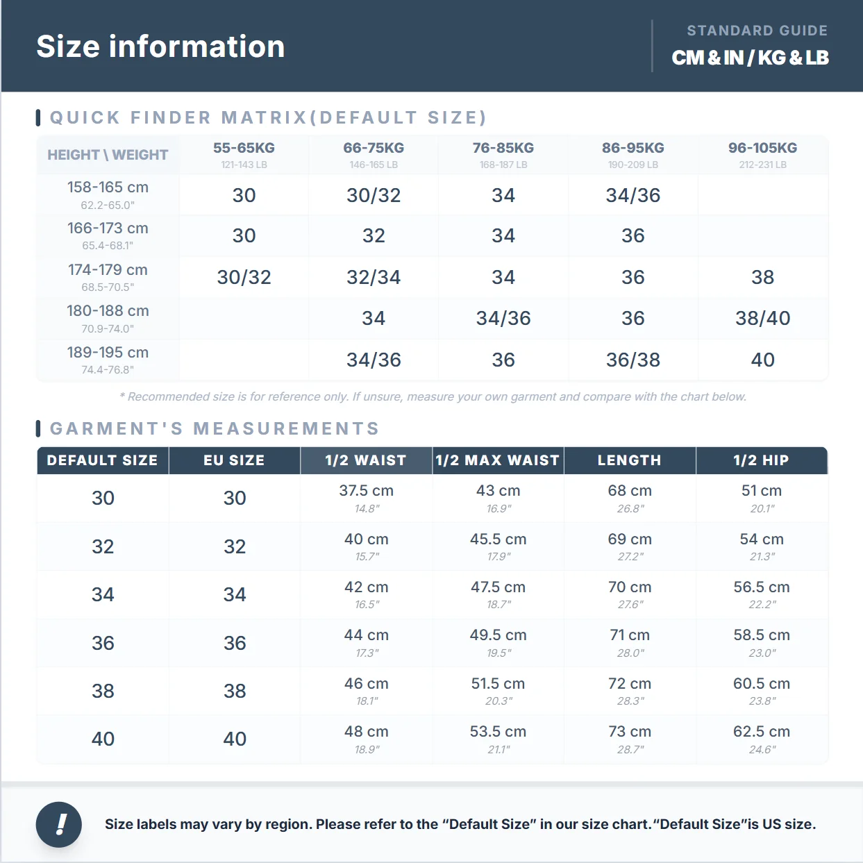 1. o tamanho padrão deste short (tamanho da etiqueta) é o tamanho cn,