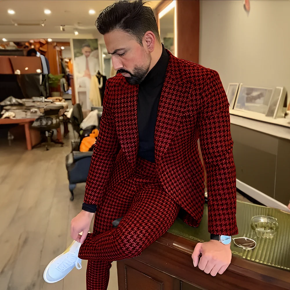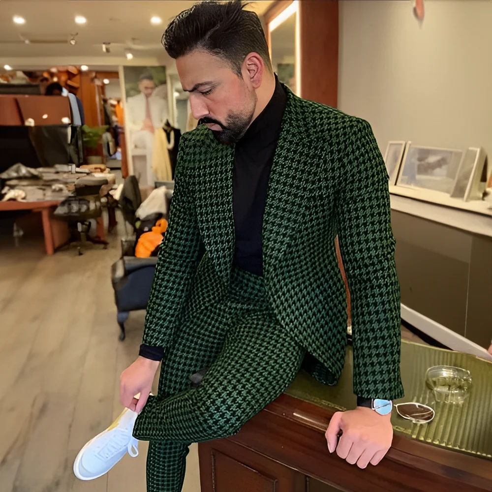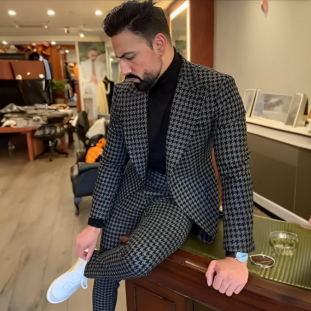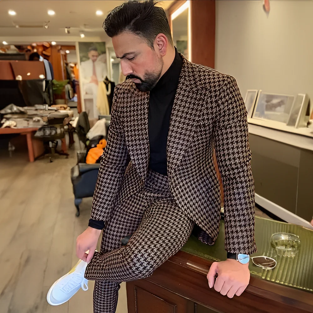 Houndstooth masculino fino ajuste terno 2 peças conjunto de lã de inverno blazer calças casamento noivo smoking roupa de trabalho masculina