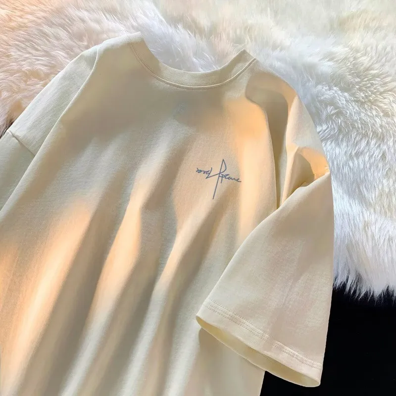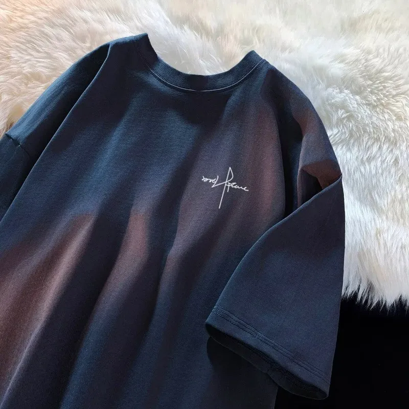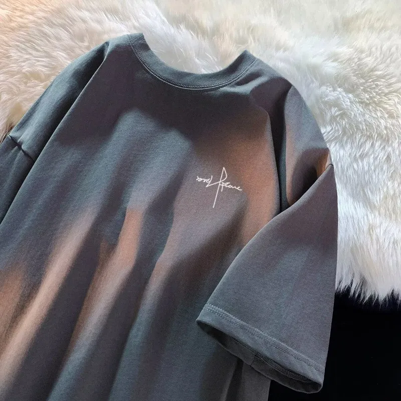 Japonês minimalista carta impressão M-8XL tamanho grande masculino casual respirável camiseta verão camisa de manga curta