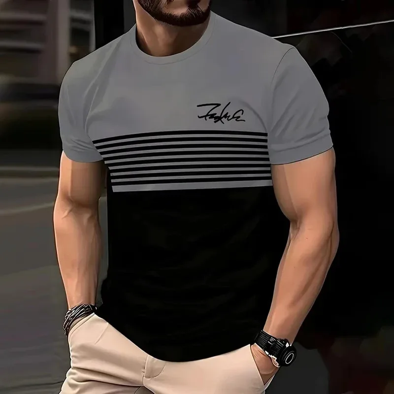 Moda listrado impresso camiseta de manga curta 2025 primavera/verão casual gola tripulação camiseta macia e respirável para