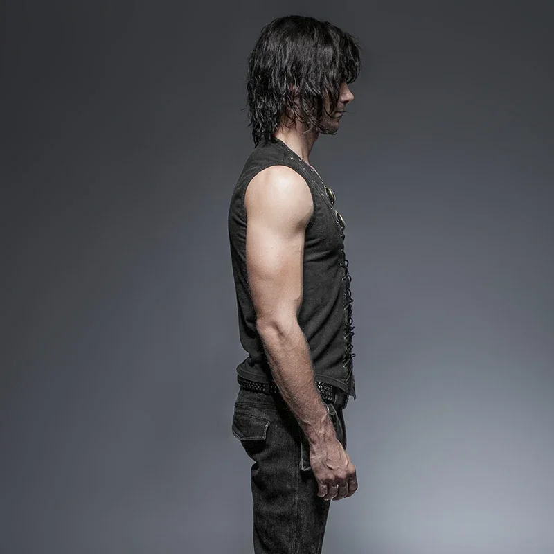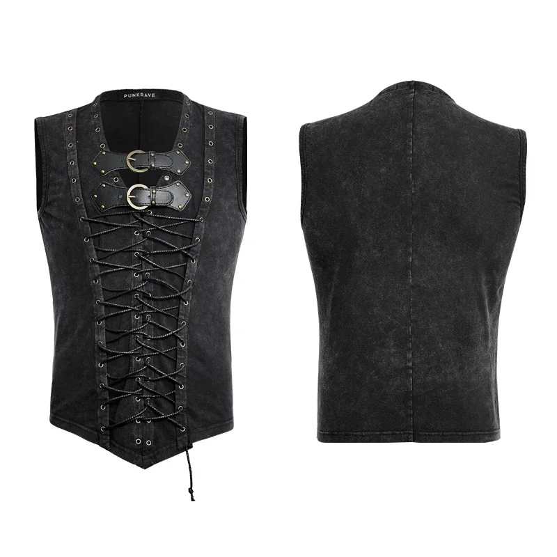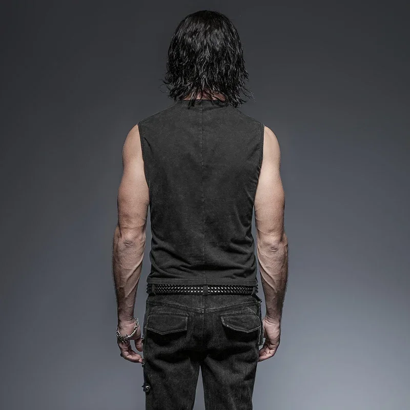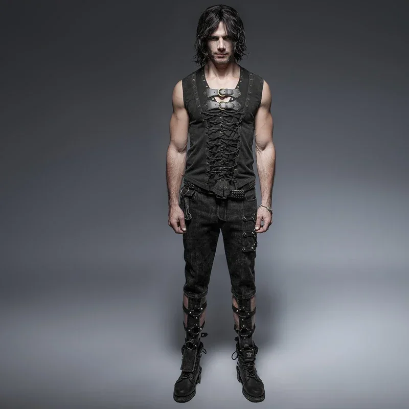 Punk rave preto punk rock algodão cinto de couro sem mangas homem regatas steampunk colete casual goth tanques corpo