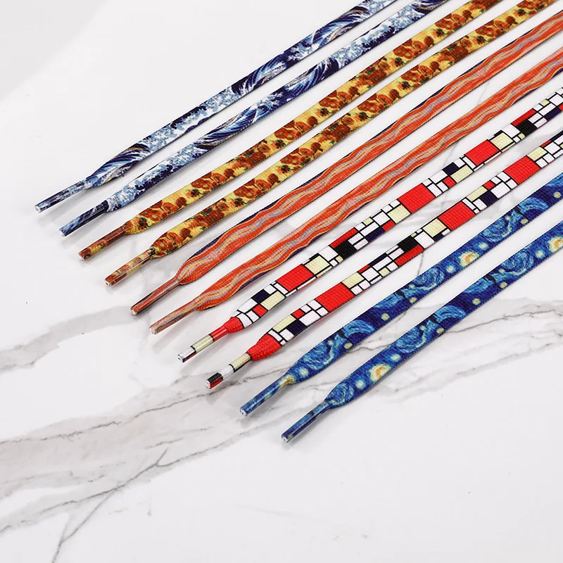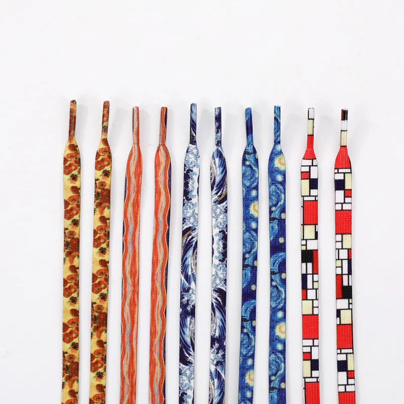 Cadarços coloridos para homens e mulheres, cadarços planos para tênis, padrão decorativo, pintura famosa, 5 cores