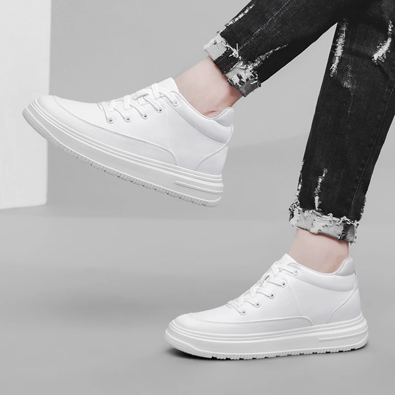 Novo invisível altura interna crescente sapatos masculinos 8cm na moda sapatos esportivos sapatos brancos britânico altura crescente tênis casuais