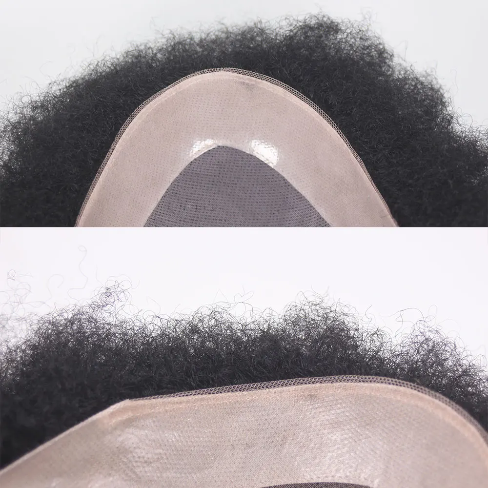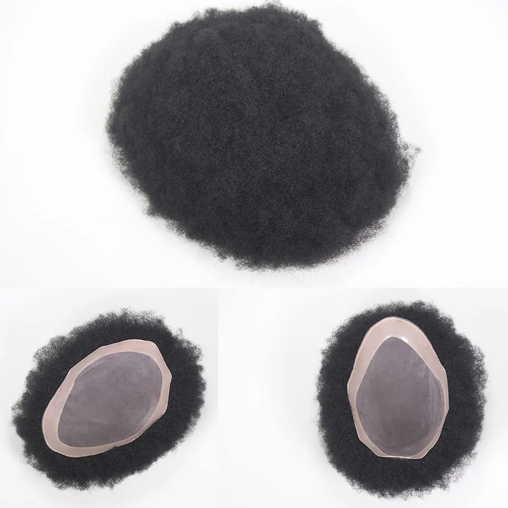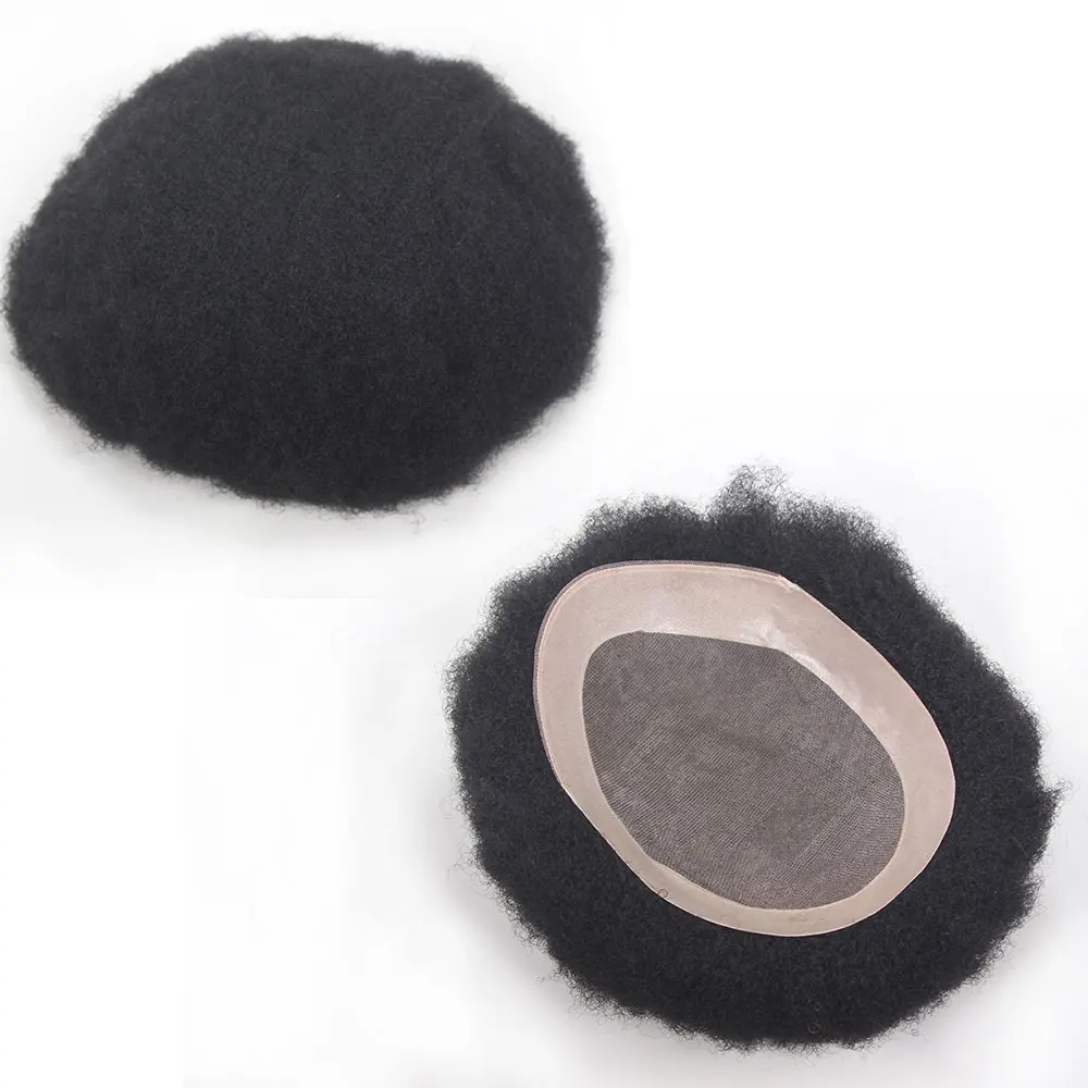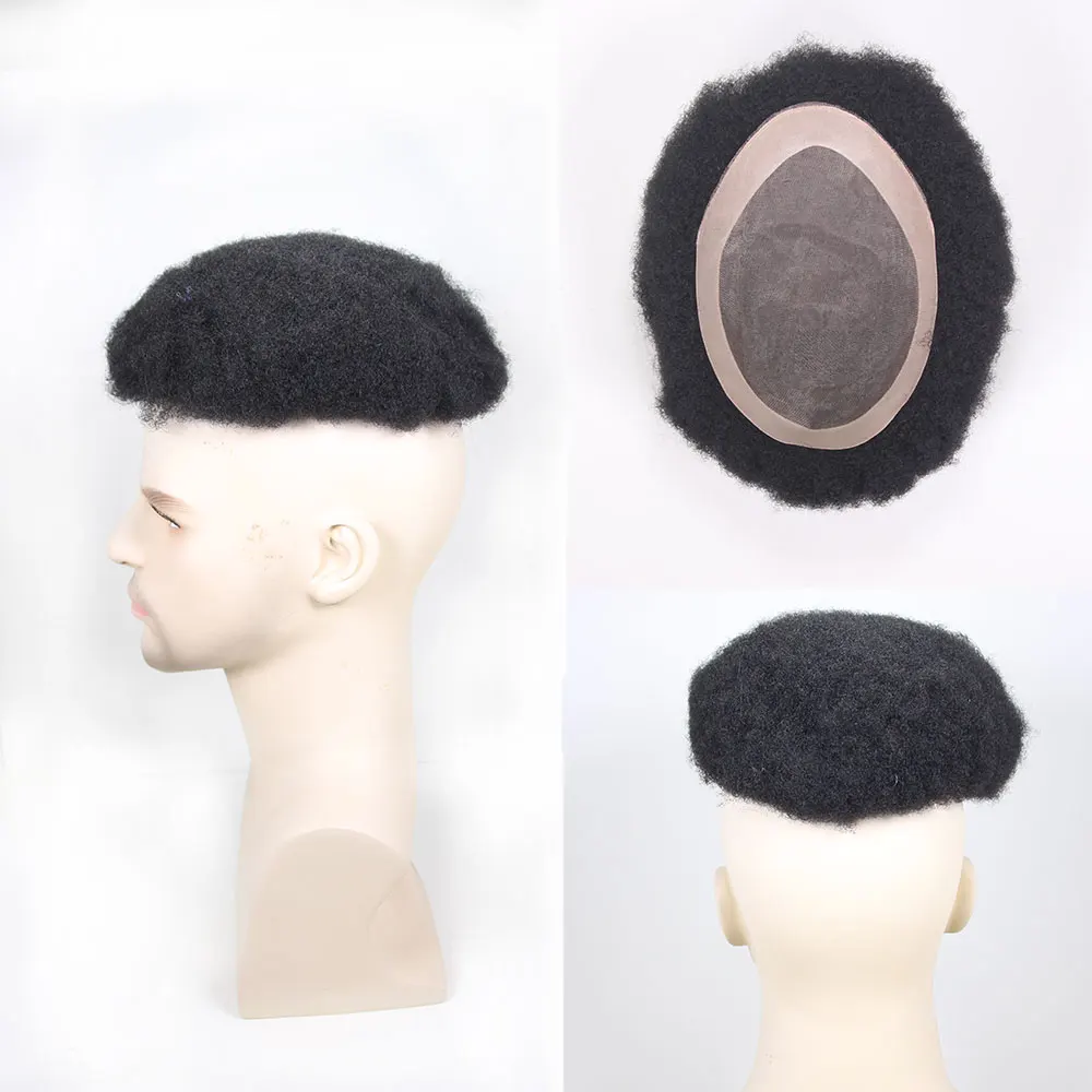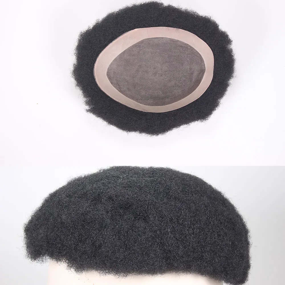 Bestes Mono-Spitzen-Afro-4-mm-Locken-Toupet für Männer, Haarteil, 100 % Echthaar-Toupet für Schwarz, Afroamerikaner, 7 x 9, Größe 1 # Farbe