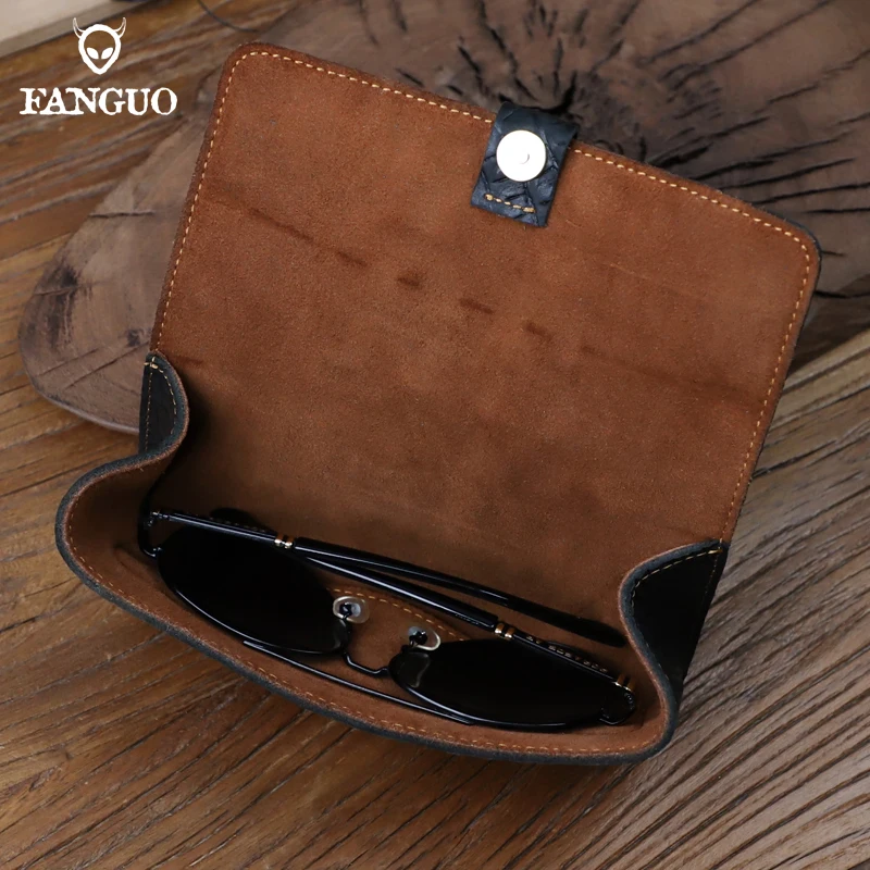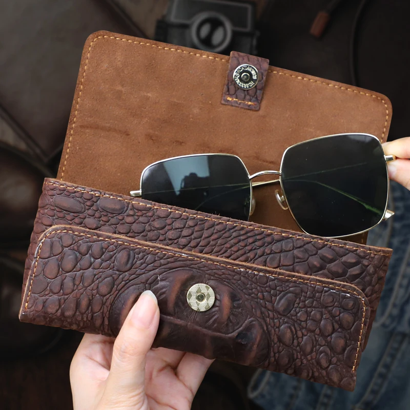 Echtes Leder mit Krokodil Muster Gläser Tasche Handgemachte Rindsleder Sonnenbrille Halter Box Retro Brillen Organizer Fall