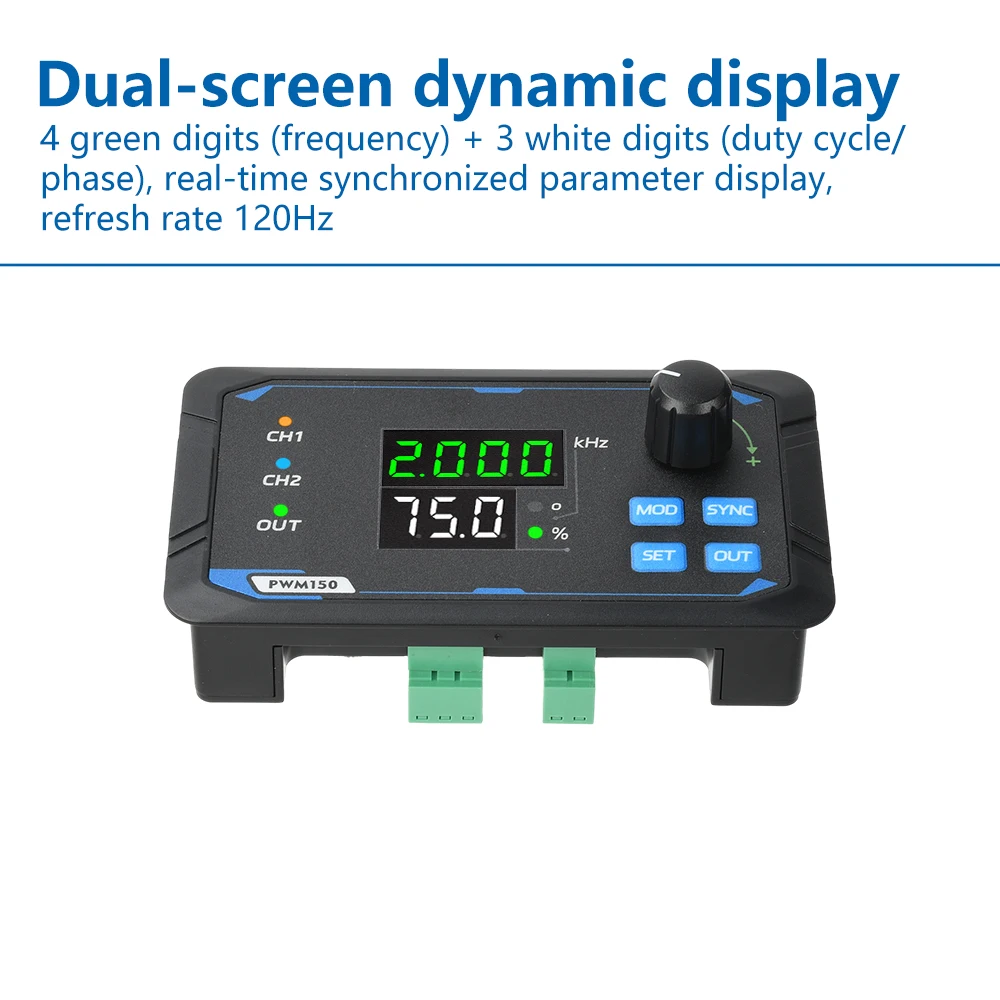 DC 5–24 V Dual-Signal-Generator, quadratisches Impulswellen-Frequenzmessgerät, 1 Hz–150 kHz Ausgang, PWM150 für Elektriker-Werkzeug