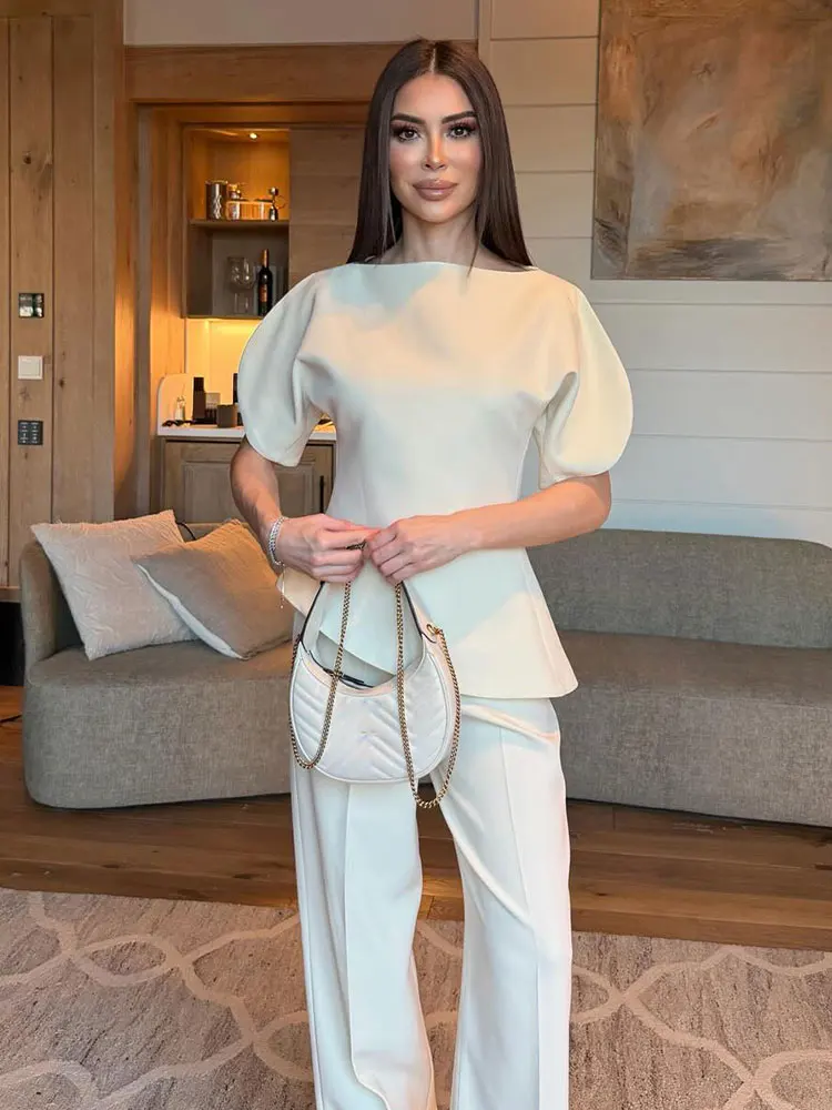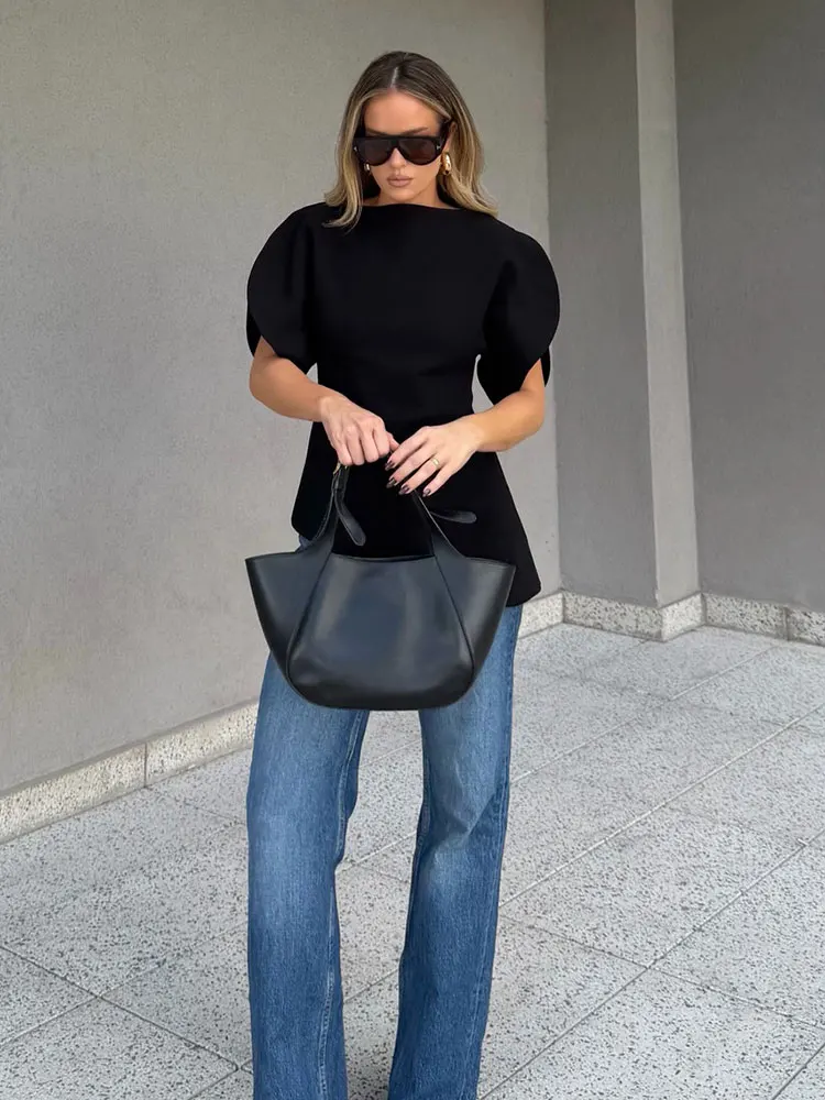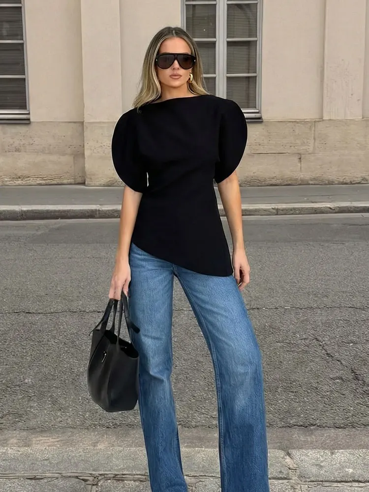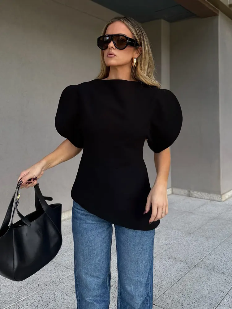 HH Frühlingsbluse mit Puffärmeln für Damen, lässige O-Neck-Kurzarm-Shirts, Sommermode für Damen, einfarbige, schicke Oberteile für die Büro-Dame