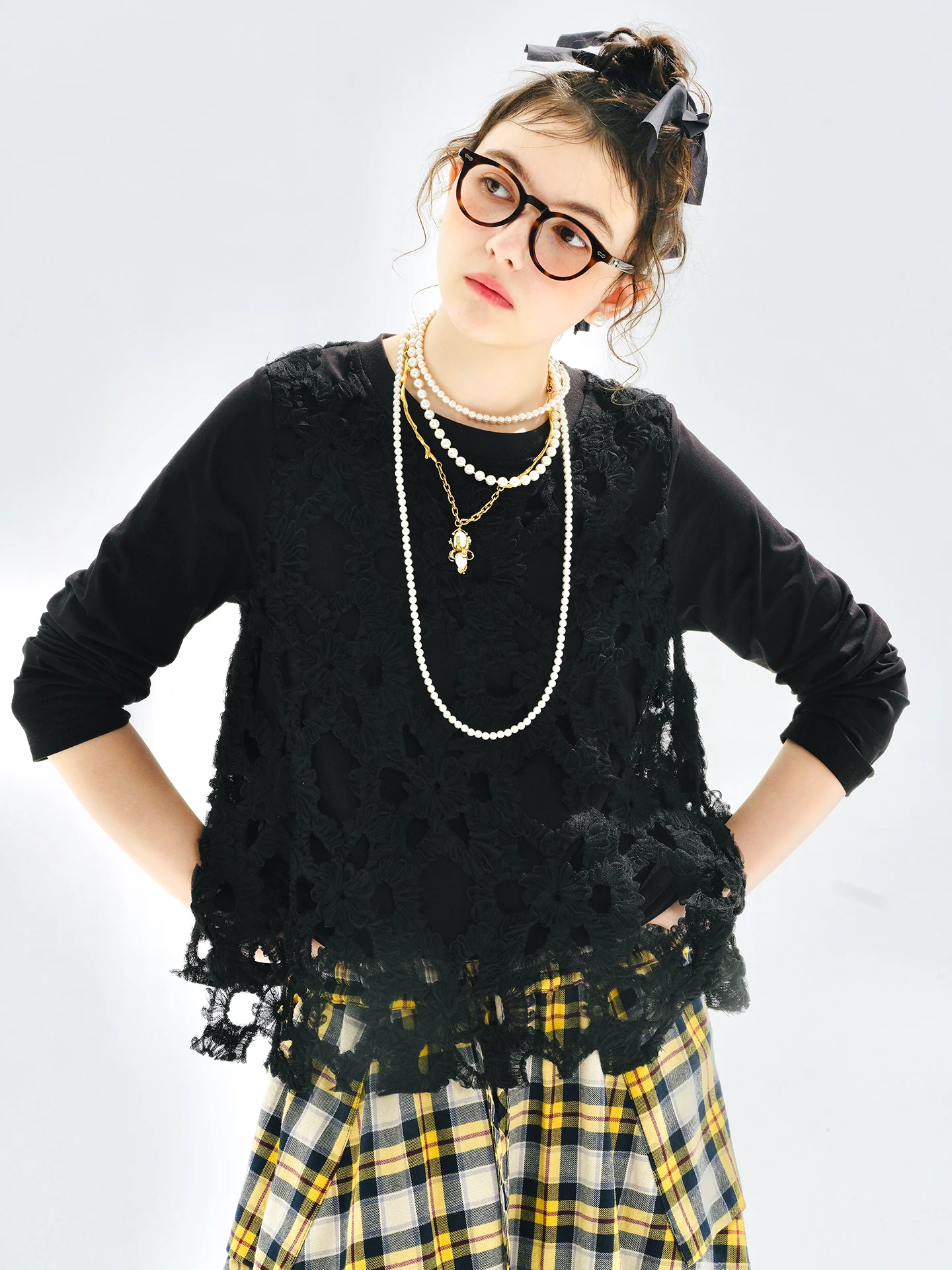 T-shirt imakokoni2025 original herbst süße literarische gestrickte spitze langarm frauen top 255123