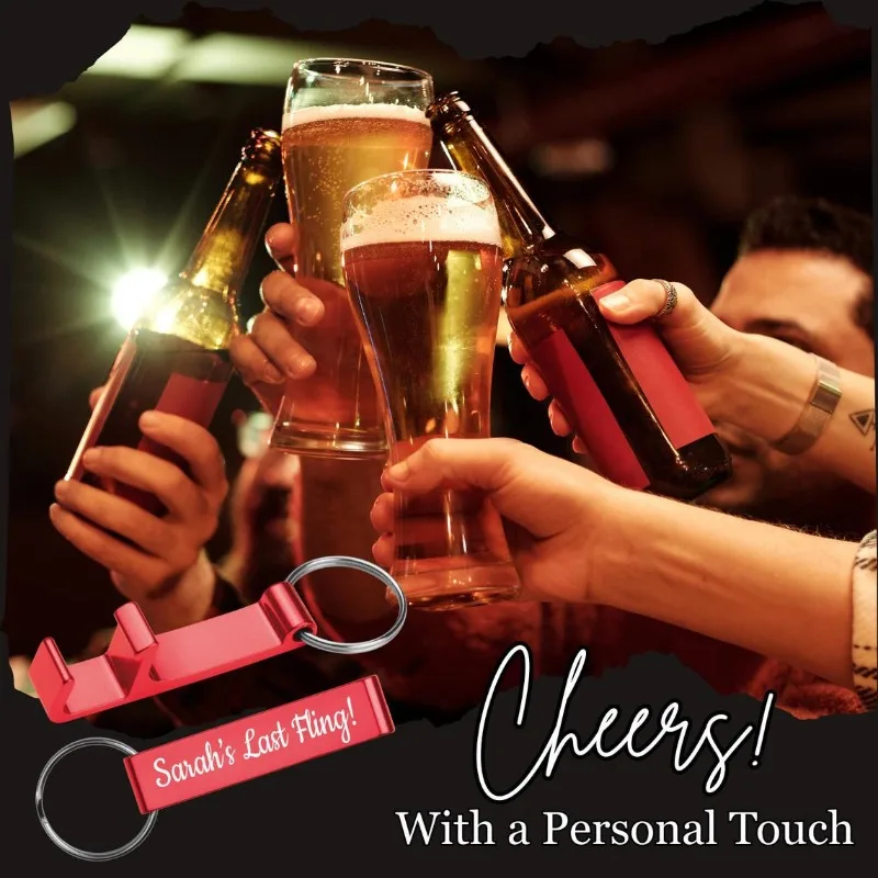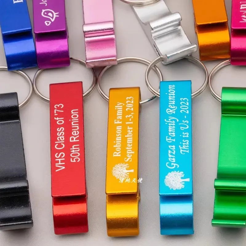 10 Stück kostenloser personalisierter Aluminium-Flaschenöffner, Schlüsselanhänger, gravierter individueller Metall-Flaschenöffner für Geburtstag, Hochzeit, Party, Geschenk