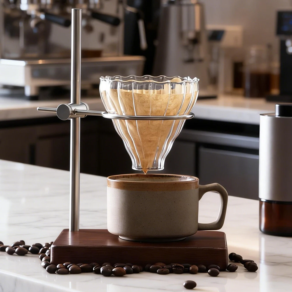 360 ° Drehbarer, höhenverstellbarer Tropfständer aus Metall – Silber, luxuriös, Vintage-Stil, für Kaffee, Tee, Filterhalter mit doppeltem Verwendungszweck