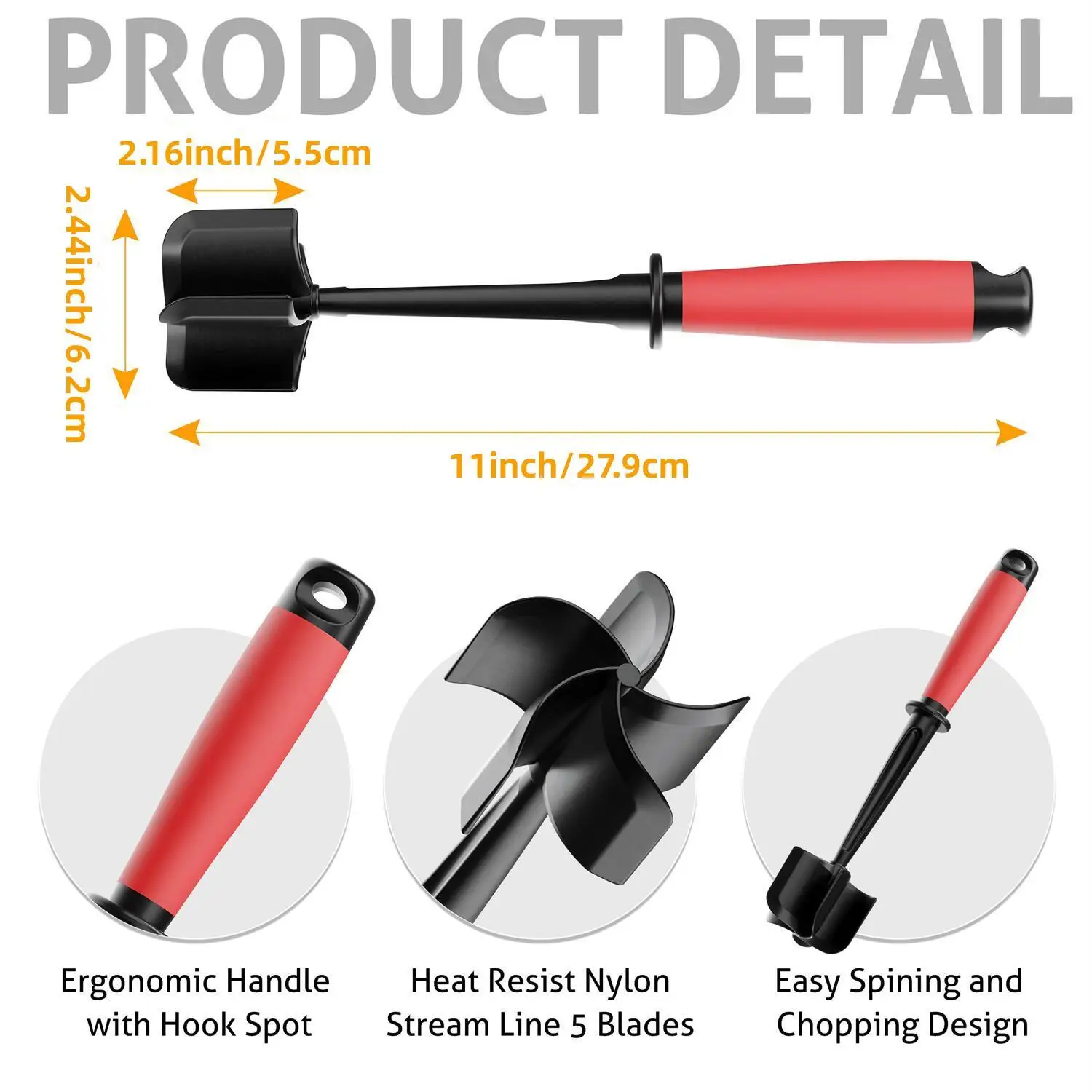 Der neue Design-Nylon-Fleischzerkleinerer für Hackfleisch, hitzebeständiger Fleischstampfer für Hamburgerfleisch, 5 gebogene Klingen