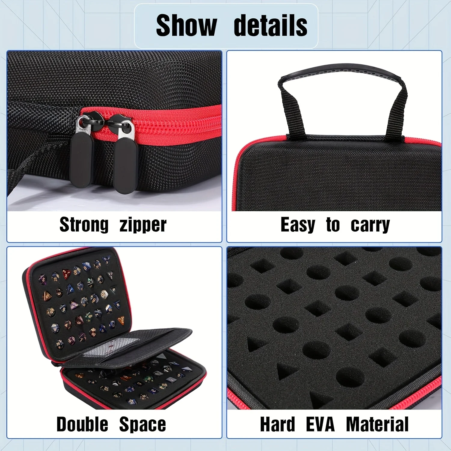 Hartschalenkoffer für Dungeons & Dragons, RPG-Brettspiele, Würfelpaket, EVA-Würfeltasche mit 70-Loch-Trennwand für tragbare D&D-Tasche