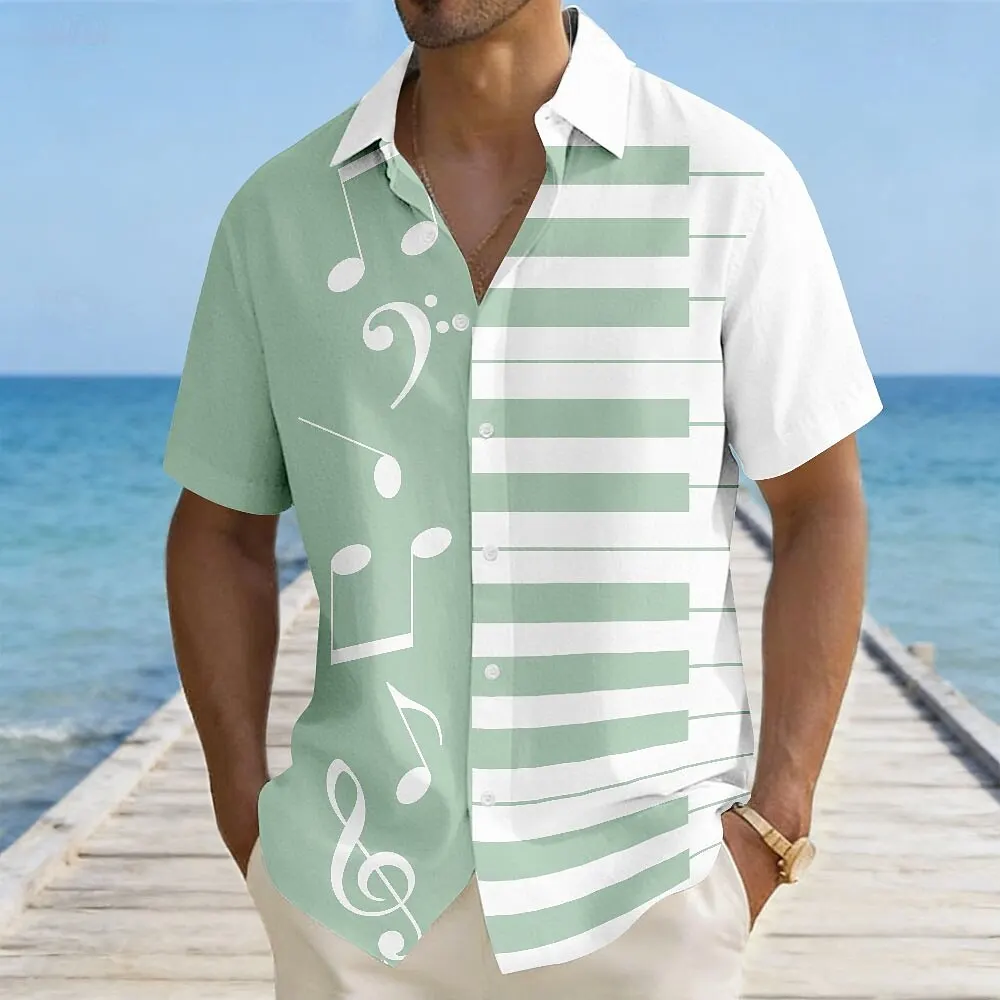 Herren Klavier Musiknoten Farbblockierendes Hemd Sommerhemd Kurzarm Vintage Retro Outdoor Urlaub Musik Festival Sommer