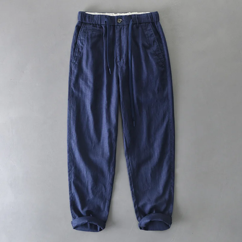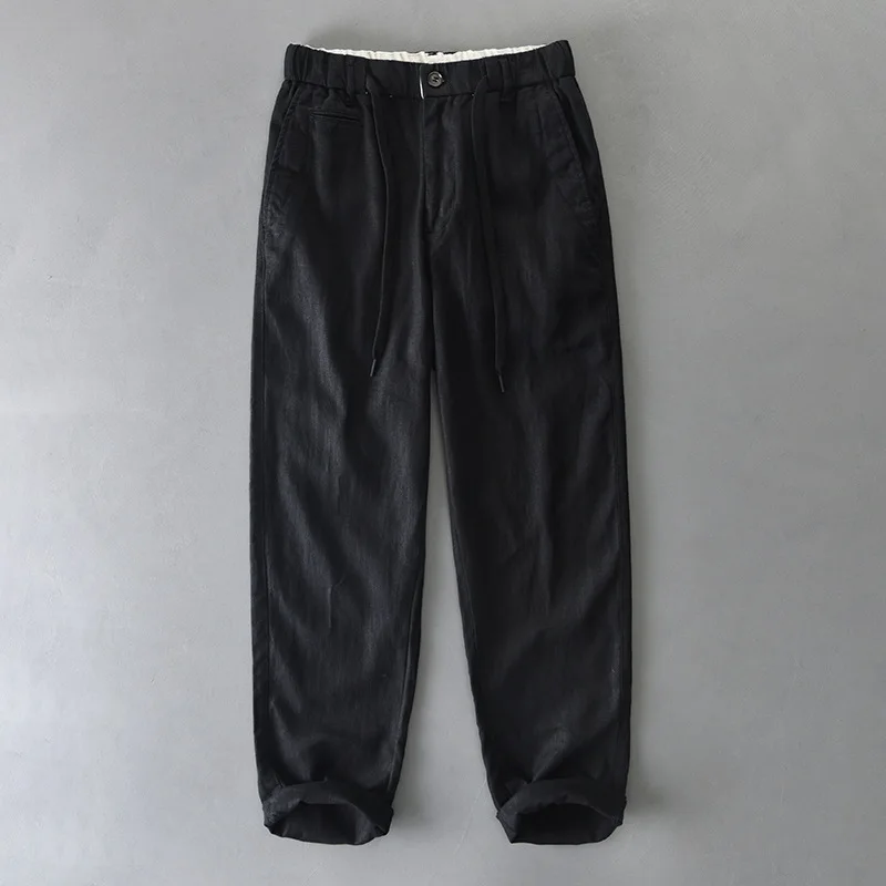 Z670 Männer Baumwolle Leinen Hosen Gute Qualität Frühjahr Sommer Mode Elastische Taille Einfarbig Einfache Gerade Atmungsaktive Gemütliche Hosen