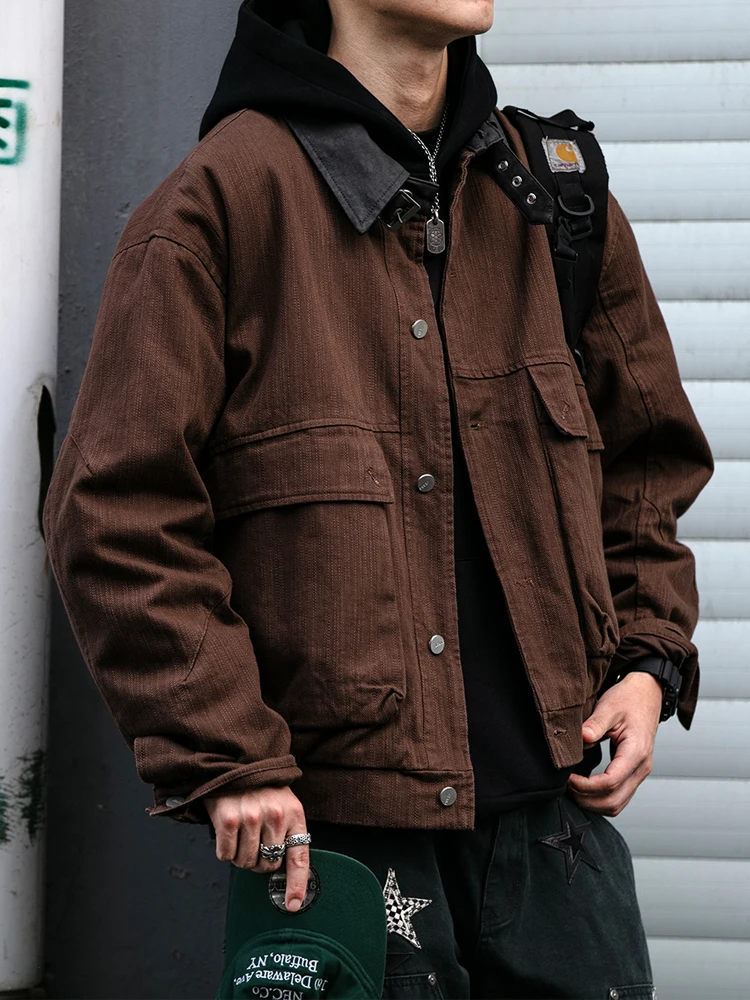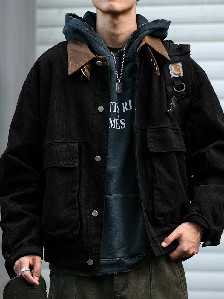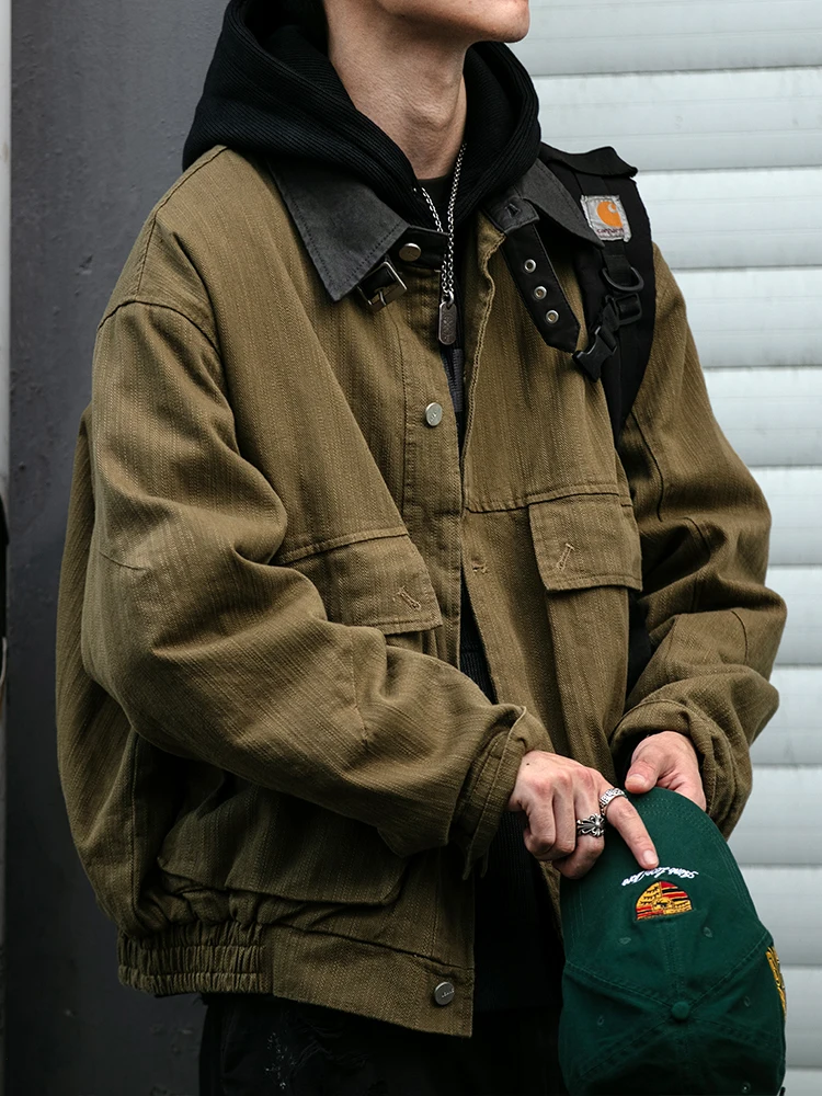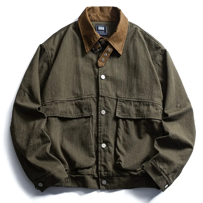 Amerikanische Vintage-Cargojacke für Herren, gewaschener Distressed-Reverskragen, hochwertige, reguläre Passform, lässiger Allzweckmantel für Frühling und Herbst