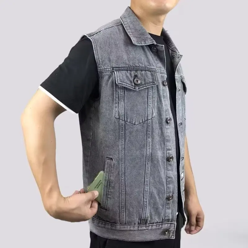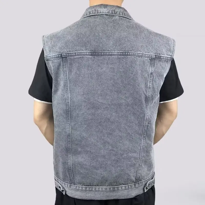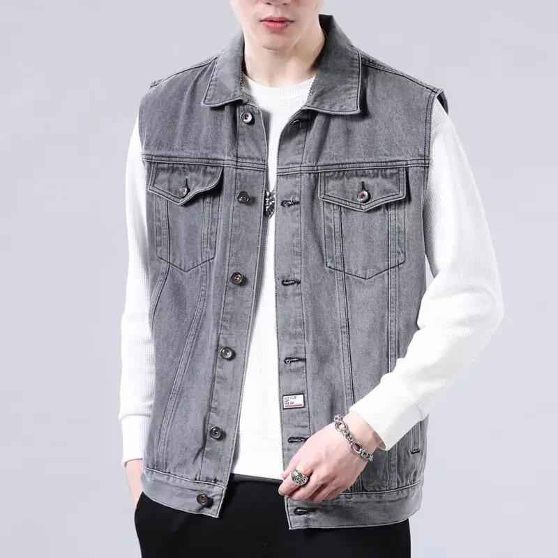 High-End-Retro-Jeansweste, ärmelloses Revers für Herren, Weste, Weste, Weste, Weste, Weste, Weste, Weste, Arbeitskleidung mit mehreren Taschen